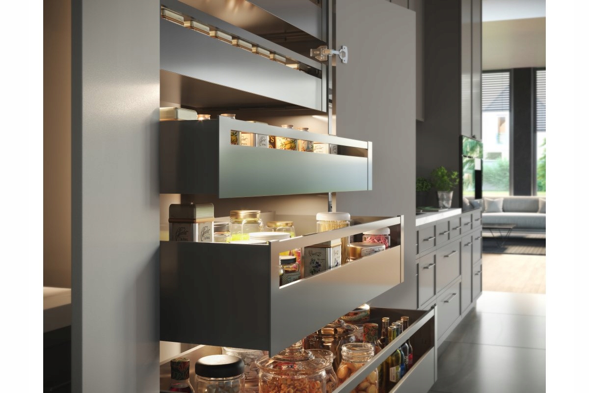 Ящик GTV Axis Pro — решение для любого типа помещения. Направляющая оснащена механизмом бесшумного закрывания и возможностью полного выдвижения ящика.