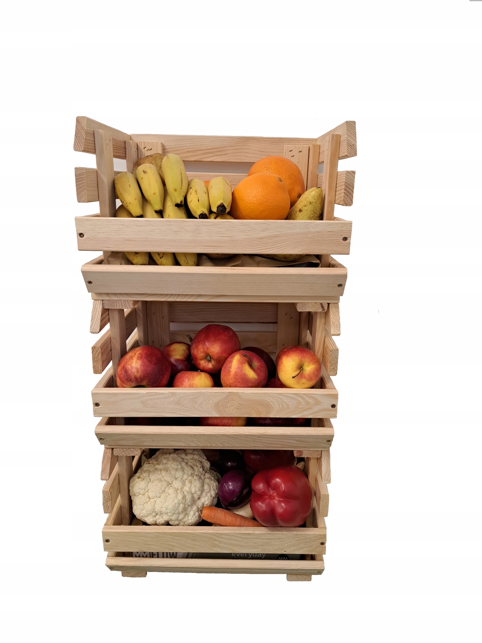 Деревянная полка для овощей и фруктов изготовлена из натуральной древесины сосны. Древесина ничем не пропитана, имеет здоровые сучки, которые придают мебели естественный и теплый вид. Поверхность полки гладкая. Оснащен полками, предназначенными для хранения овощей и фруктов.
