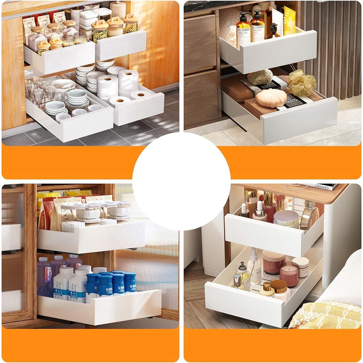 【Легкий доступ к предметам】 Благодаря нашему втягиванию в шкафы вам больше не нужно сидеть на коленях, чтобы добраться до нижних полков, и вам больше не нужно разгружаться, хранящиеся спереди, чтобы добраться до объектов сзади.