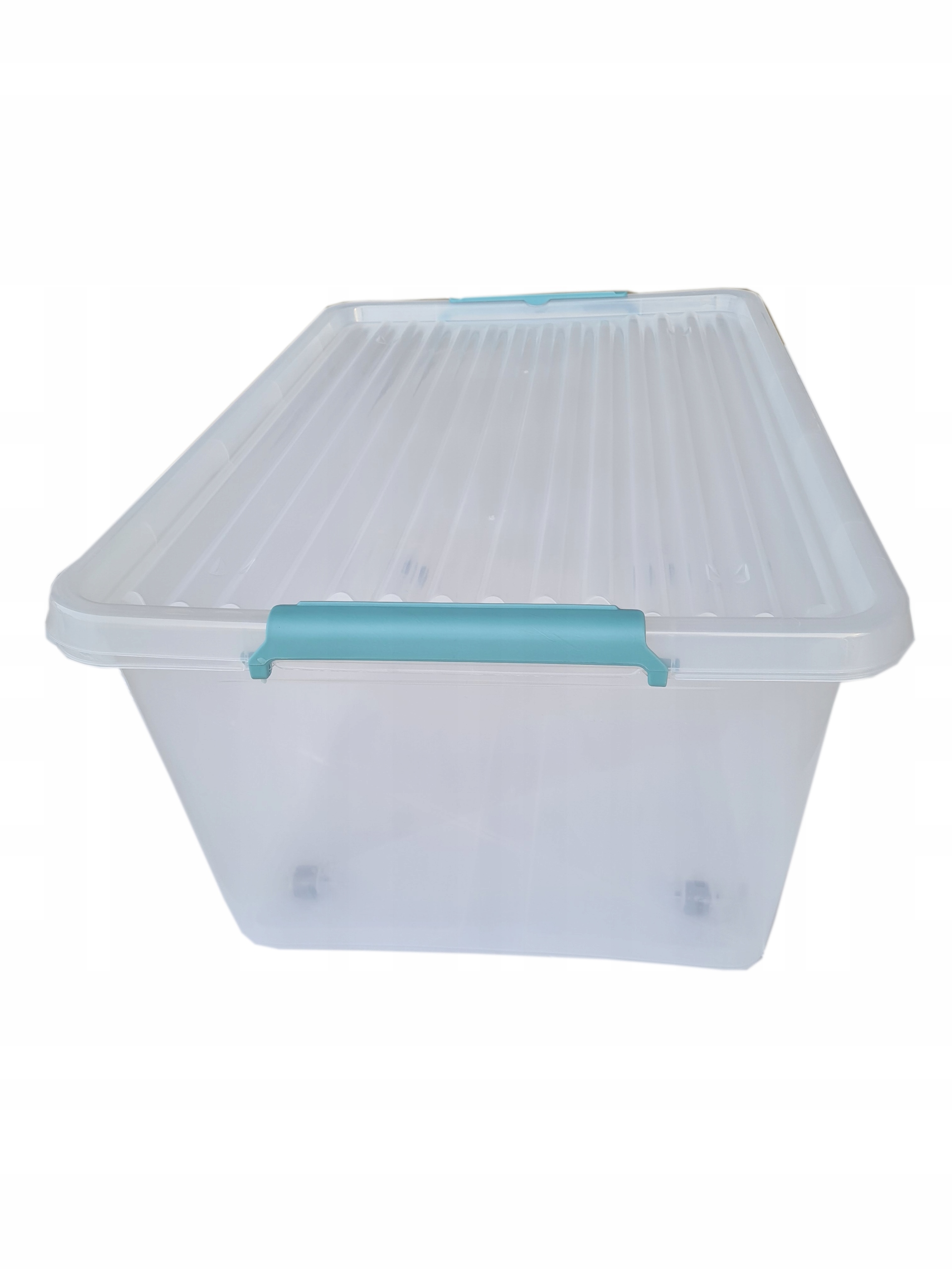 Пластиковый контейнер-органайзер 40л с бирюзовыми клипсами