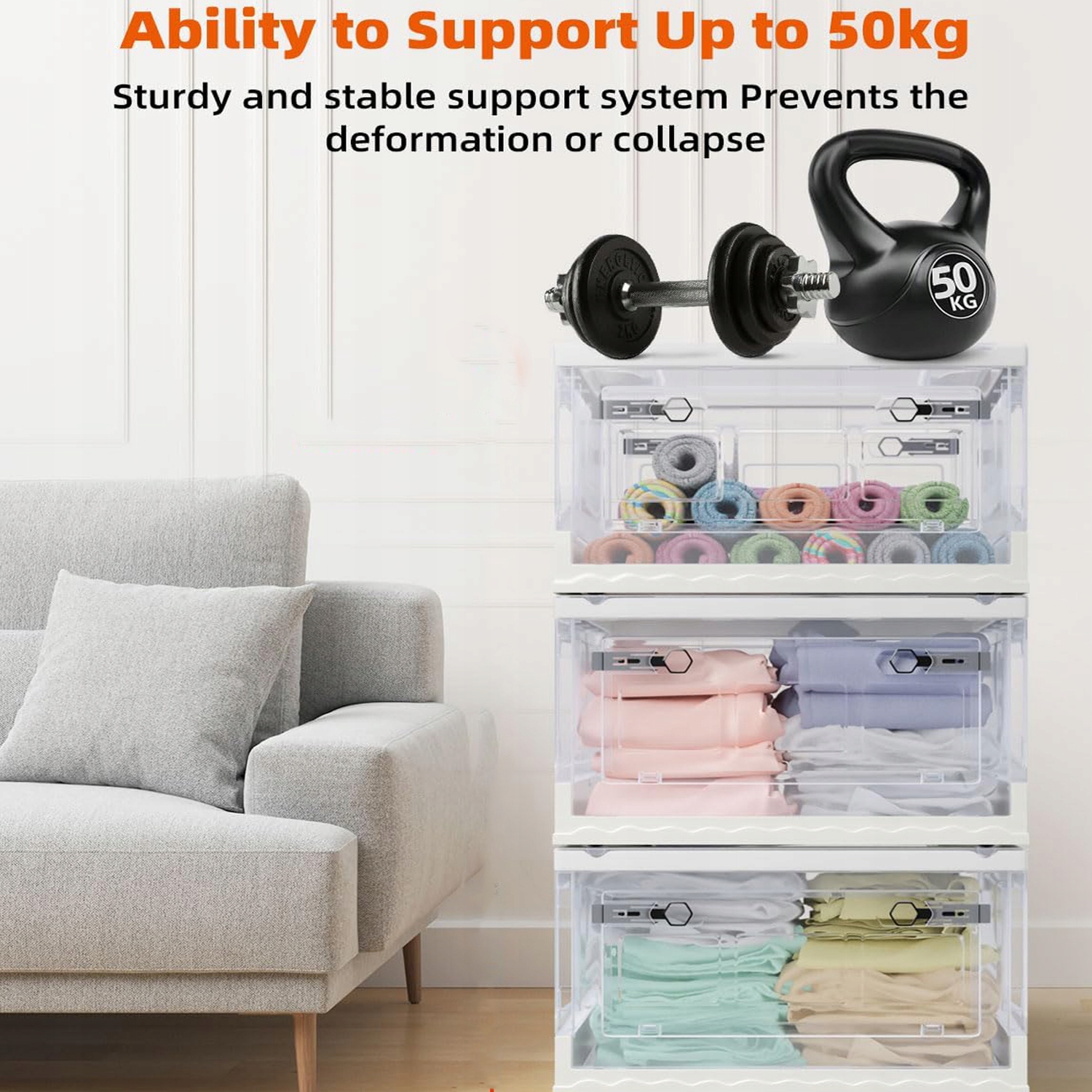 Изготовленный из безопасного и прочного полипропиленового материала, он разработан так, чтобы быть безопасным, прочным, долговечным, без запаха и безвредным для человеческого организма, и может использоваться в течение длительного времени. Большая вместимость, позволяет хранить одежду, носки, свитера, украшения, журналы, салфетки, косметику, игрушки, безделушки, одежду, книги, постельное белье, закуски, напитки и т. д.