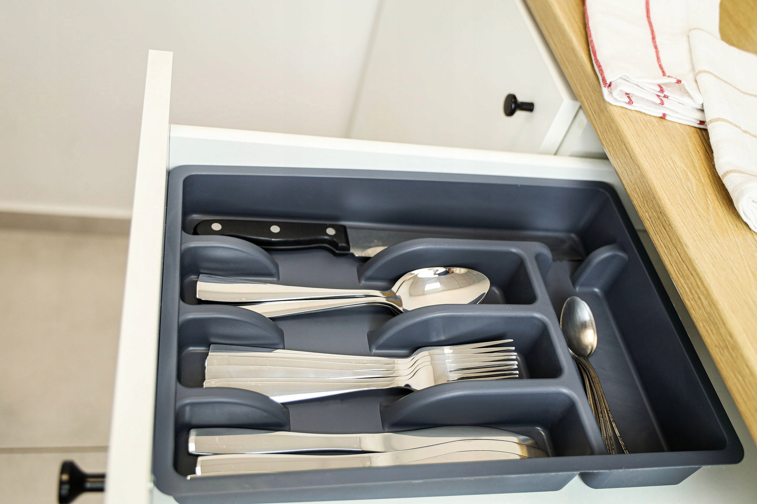 ЯЩИК-ВСТАВКА НА СТОЛОВЫЕ ПРИБОРЫ кухонный органайзер серый 26х36х5,5 см 5 секций