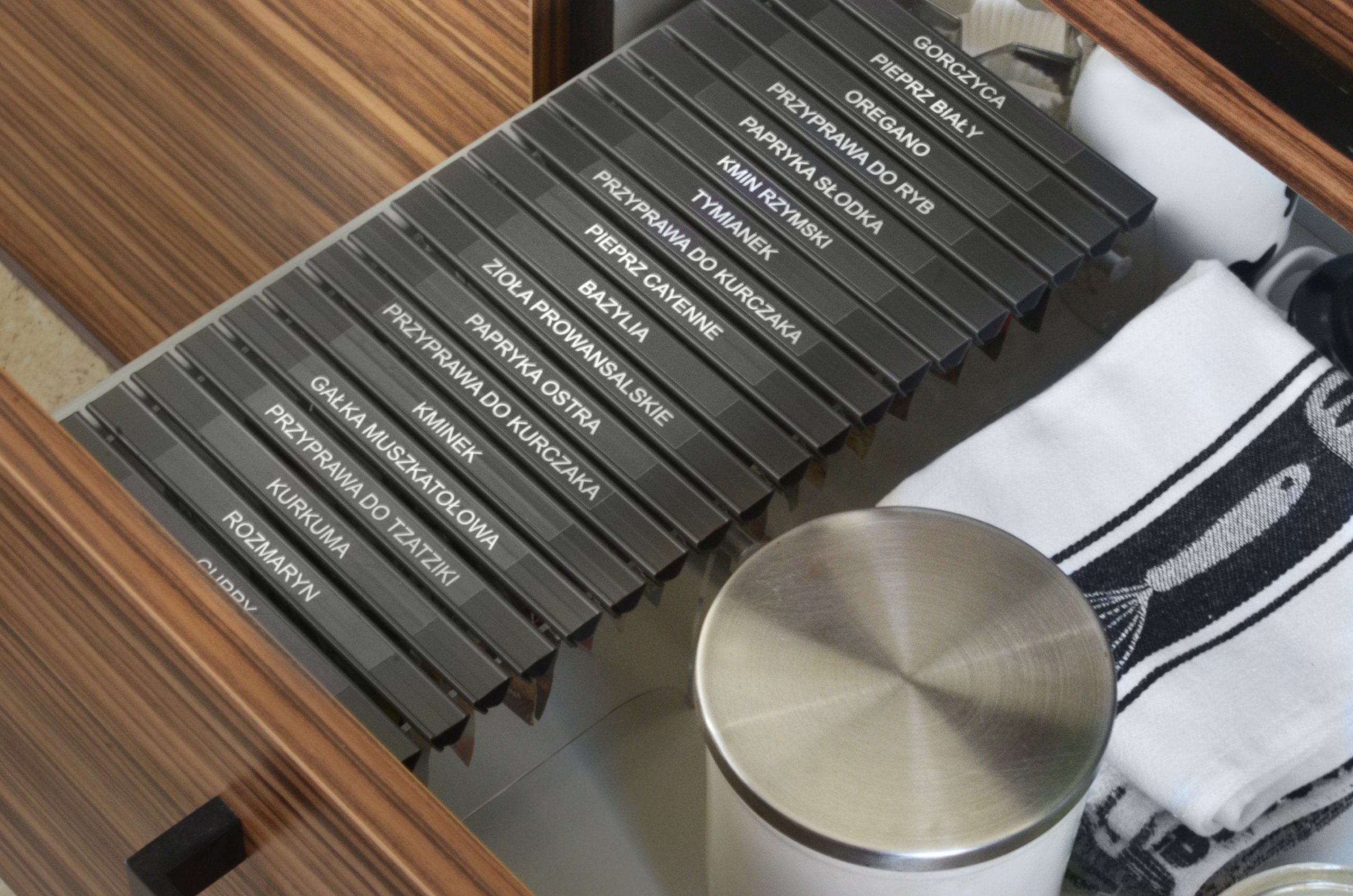 Стеллаж для специй – идеальное решение для всех любителей хорошей кухни и порядка, это также идеальное предложение для минималистских кухонь. Органайзер позволяет поддерживать идеальный порядок в низких кухонных ящиках.
