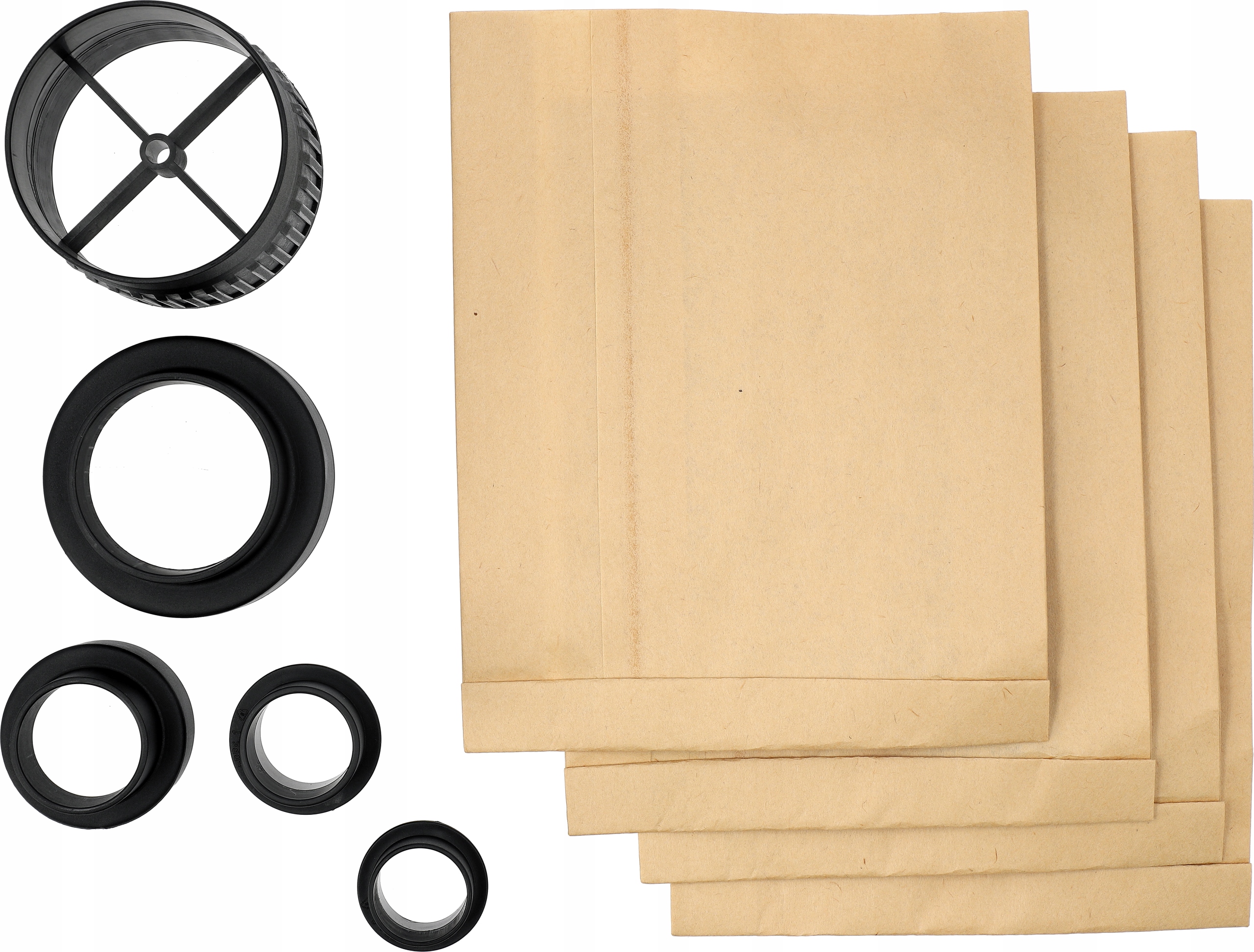 - Состав комплекта: удаление стружки, гибкий шланг (Ø100 мм), наконечник шланга х2, фильтр, фильтр-мешок, адаптер