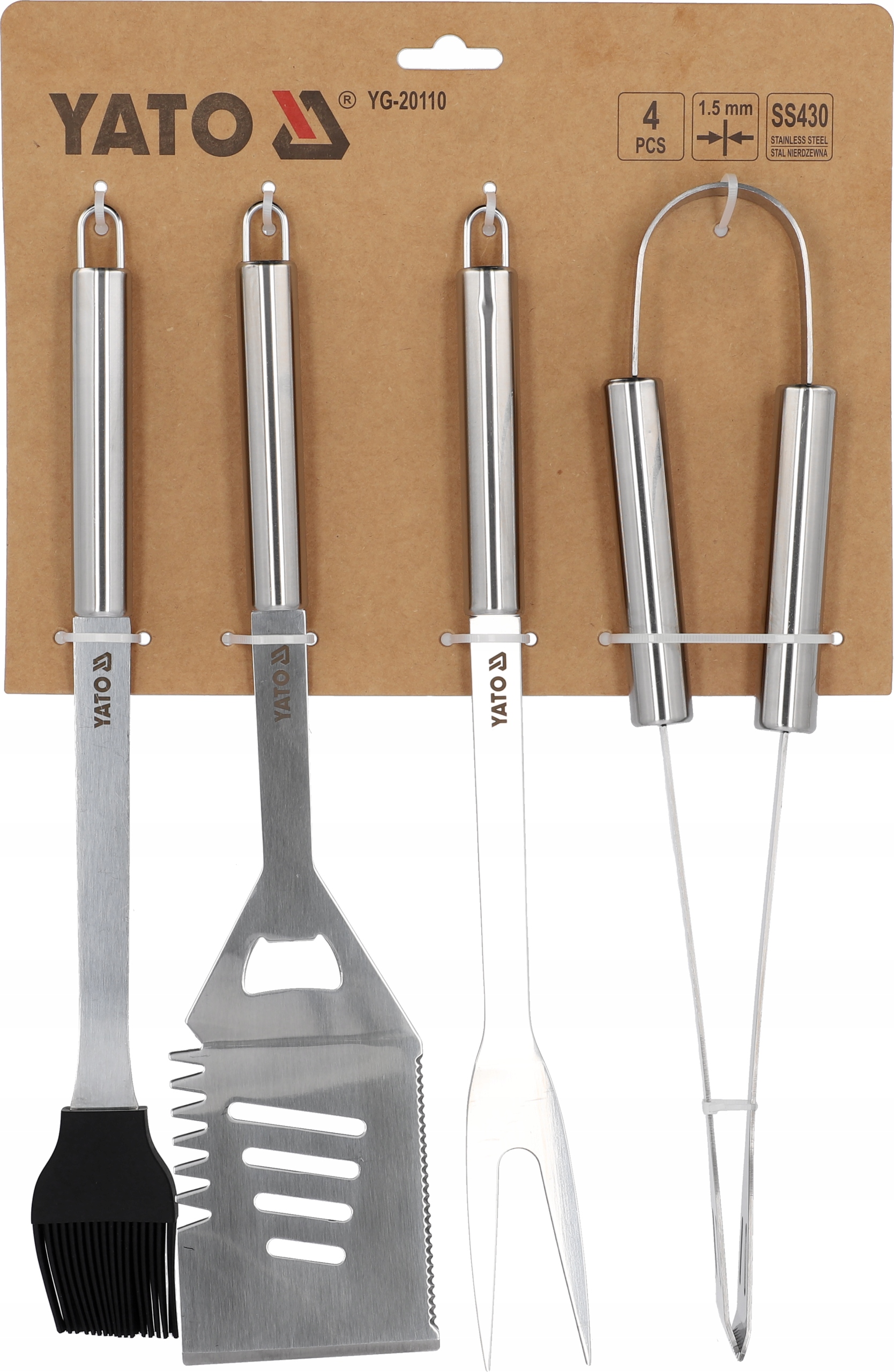 Набор столовых приборов YATO из нержавеющей стали, полезных при приготовлении на гриле.