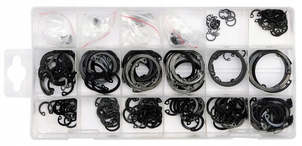 Профессиональный набор из 300 внутренних колец СЕГЕРА. В наборе 18 разных размеров. И все это в солидном органайзере. Незаменим в автосервисах, сельском хозяйстве или промышленности.