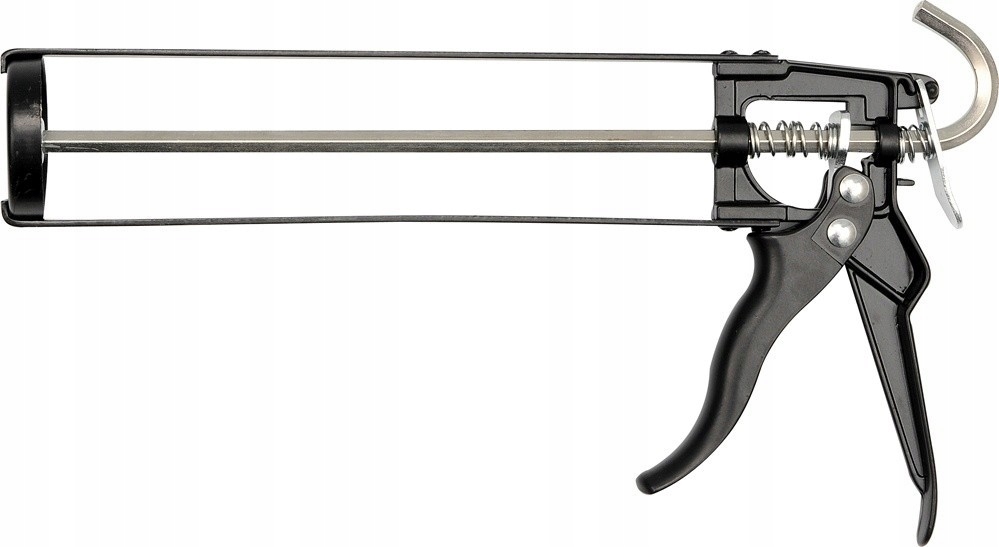 Плотный массовый сжиматель, скелетный тип. Легкий, изготовленный из стального листа, лакированный. Удобная, профилированная, эргономичная ручка, изготовленная из алюминия, позволяет эффективно наносить толстые массы, например, клей, герметики, смазочные материалы и т. Д. Вещества из типичных контейнеров 300 мл.