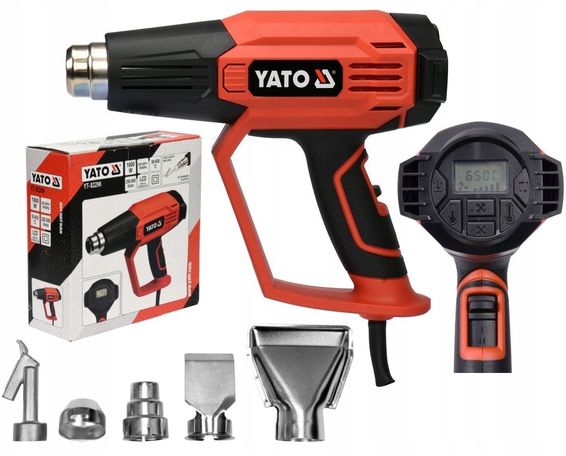 YATO ТЕПЛОВА ГАРМАТА ЕЛЕКТРИЧНИЙ ЗВАРЮВАЛЬНИЙ АПАРАТ 1600W LCD 650°C 2 ПЕРЕДАЧІ +5 НАСАДОК ПАМ'ЯТЬ