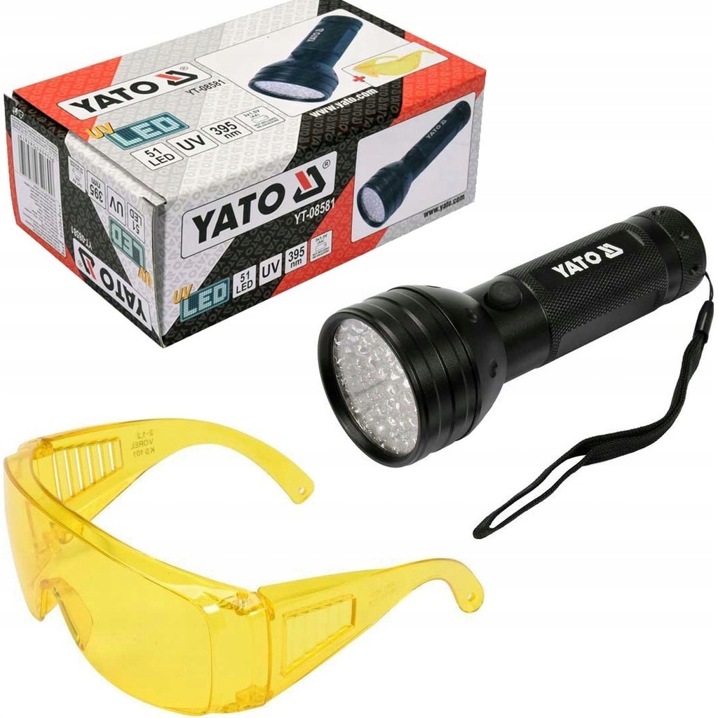 Ято УФ -фонарик 51 Светодиодный янтарный тестер кондиционера + очки