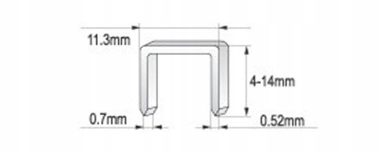 Степлер предназначен для забивания типичных стальных прямоугольных скоб длиной от 4 до 14 мм и толщиной 0,7 мм.
