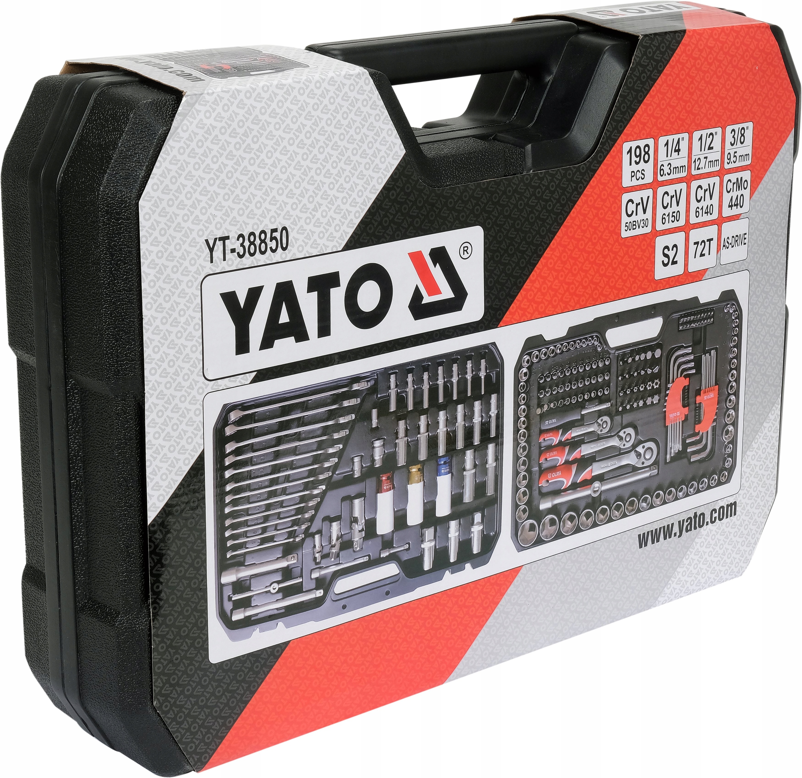 YATO ZESTAW NARZĘDZI NASADEK WALIZKA NARZĘDZIOWA 1/4", 3/8", 1/2" 198 EL.