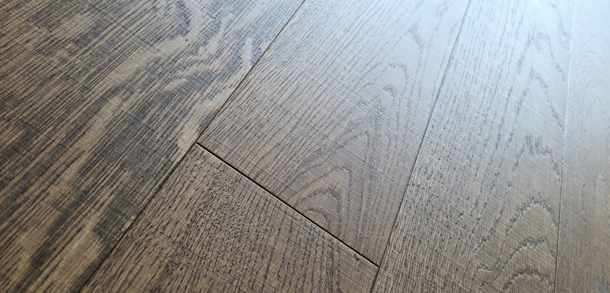 Двухслойный дубовый паркет масляно-воск, 4-х сторонний неравномерный фаск, строганный вручную