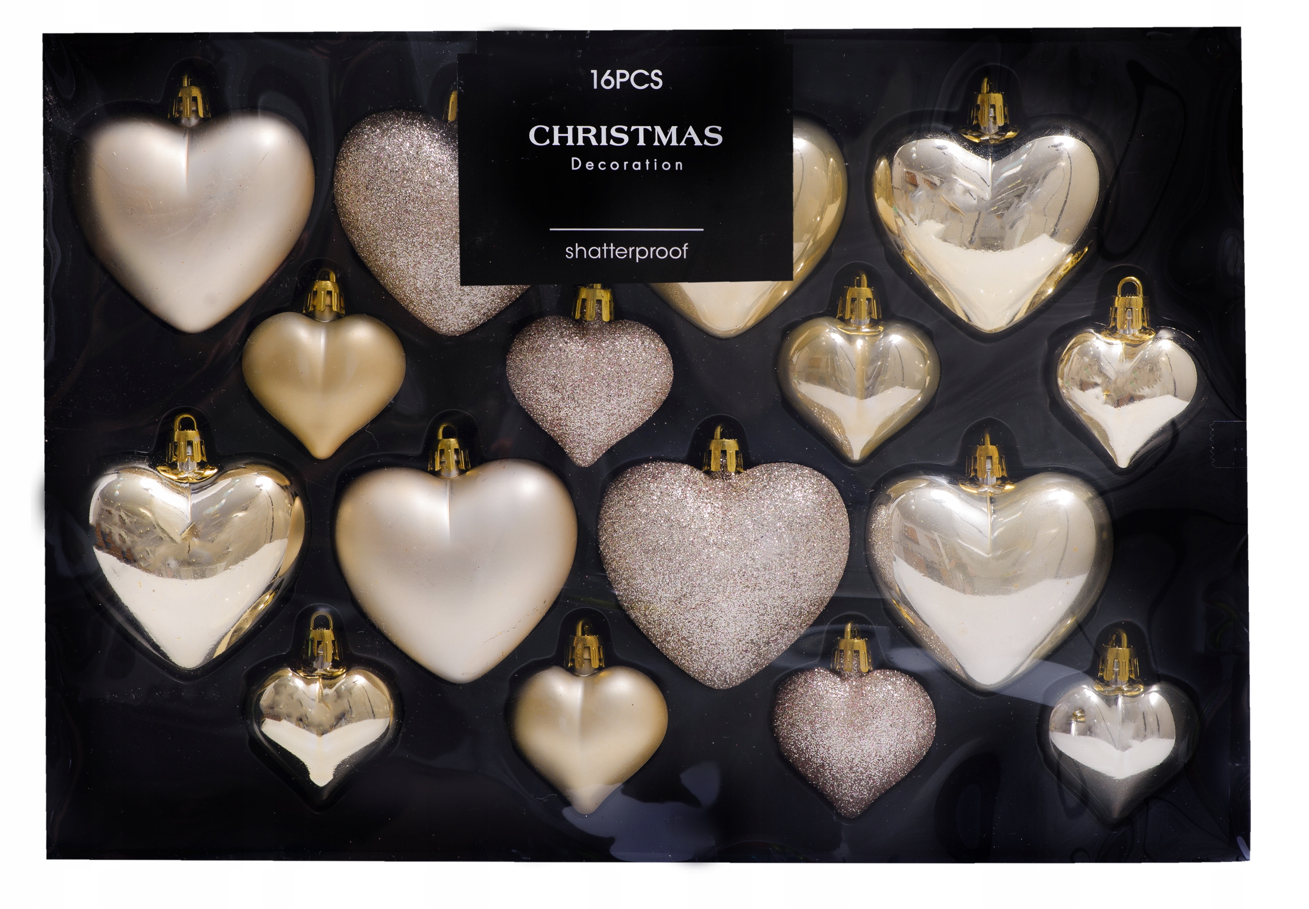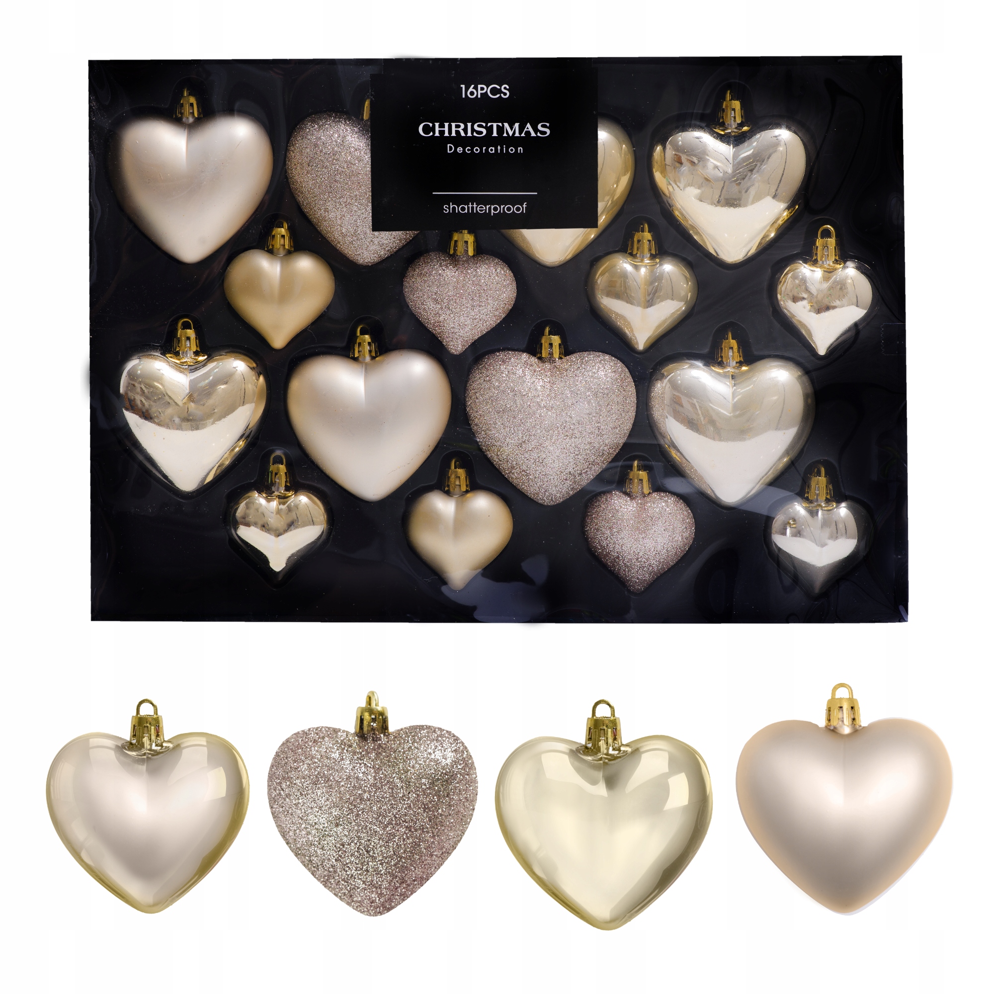 РОЖДЕСТВЕНСКИЕ ШАРЫ КРЕМОВЫЕ СЕРДЕЧКИ ПЛАСТИКОВЫЕ РОЖДЕСТВЕНСКИЕ ШАРЫ 16 ШТ. БЕЗОПАСНЫЙ НАБОР
