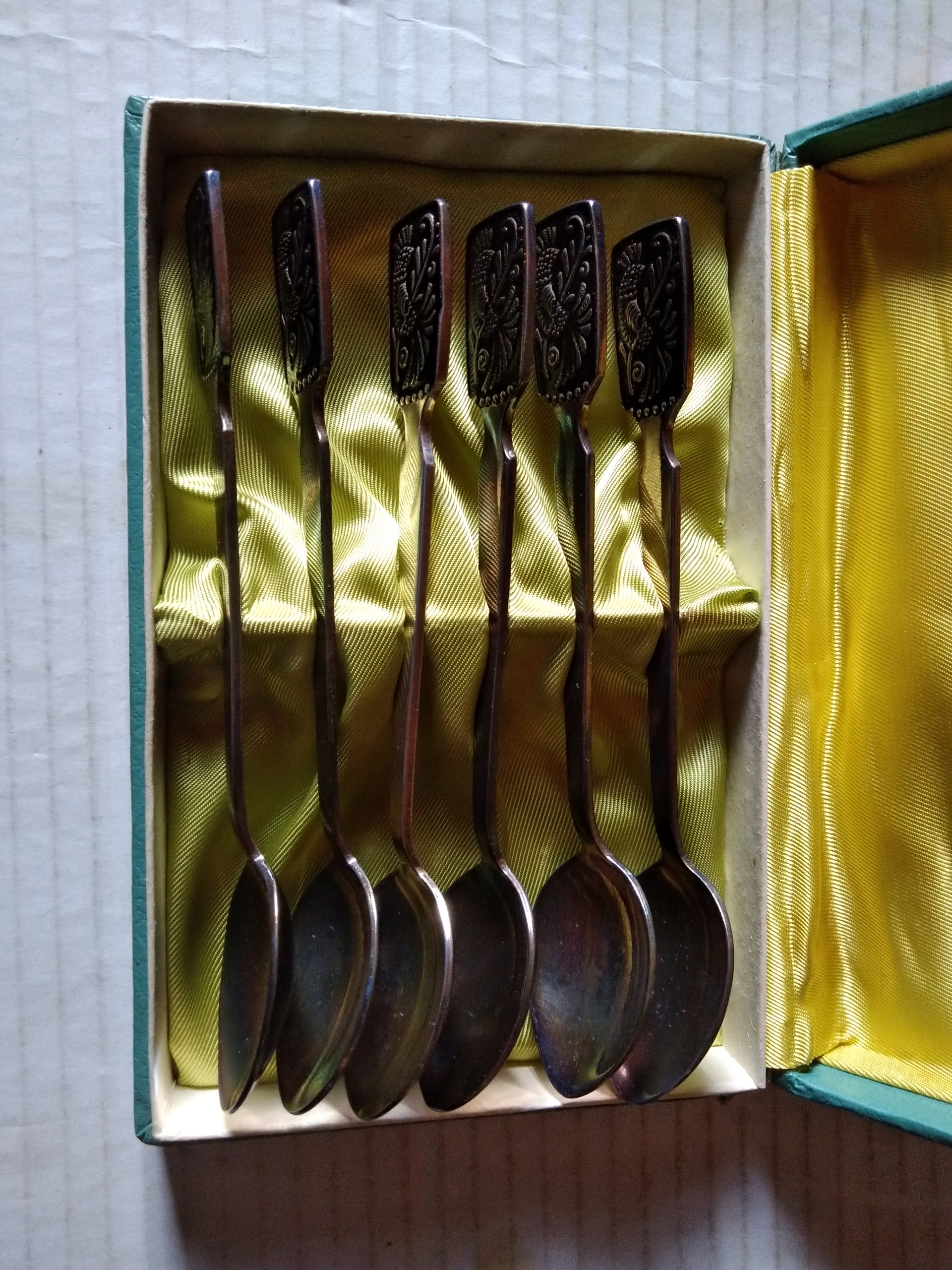 Предлагаю из своей частной коллекции 6 чайных ложек - старых - производства ЗССР. Вероятно - покрыты налетом. В оригинальной коробке - футляре.