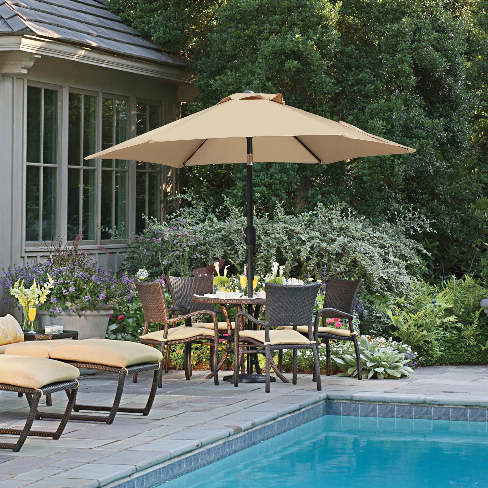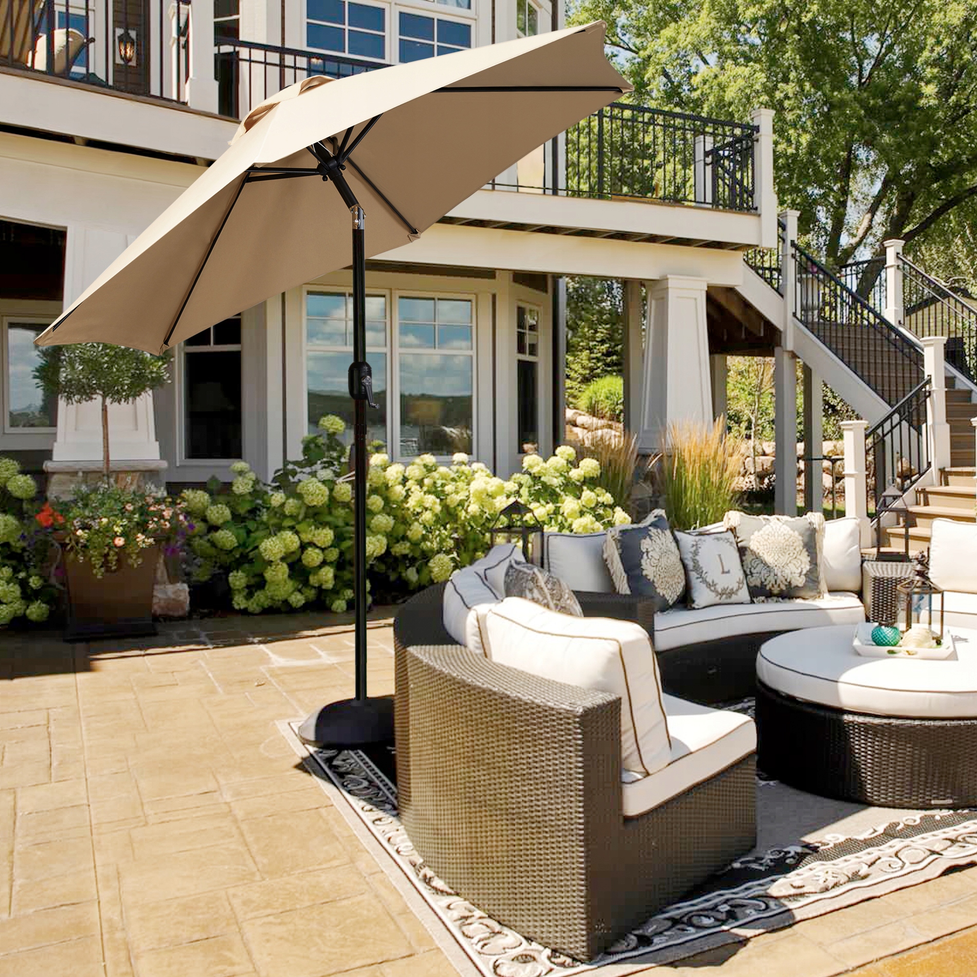 ⛱ Установка угла наклона с использованием кнопки: верхняя часть этого садового зонта была разработана так, чтобы ее можно было наклонить. Нажав кнопку на центральном полюсе, наклоните зонт в зависимости от ваших потребностей, предоставив себе более гибкий и когерентный солнцезащитный козел в течение дня.