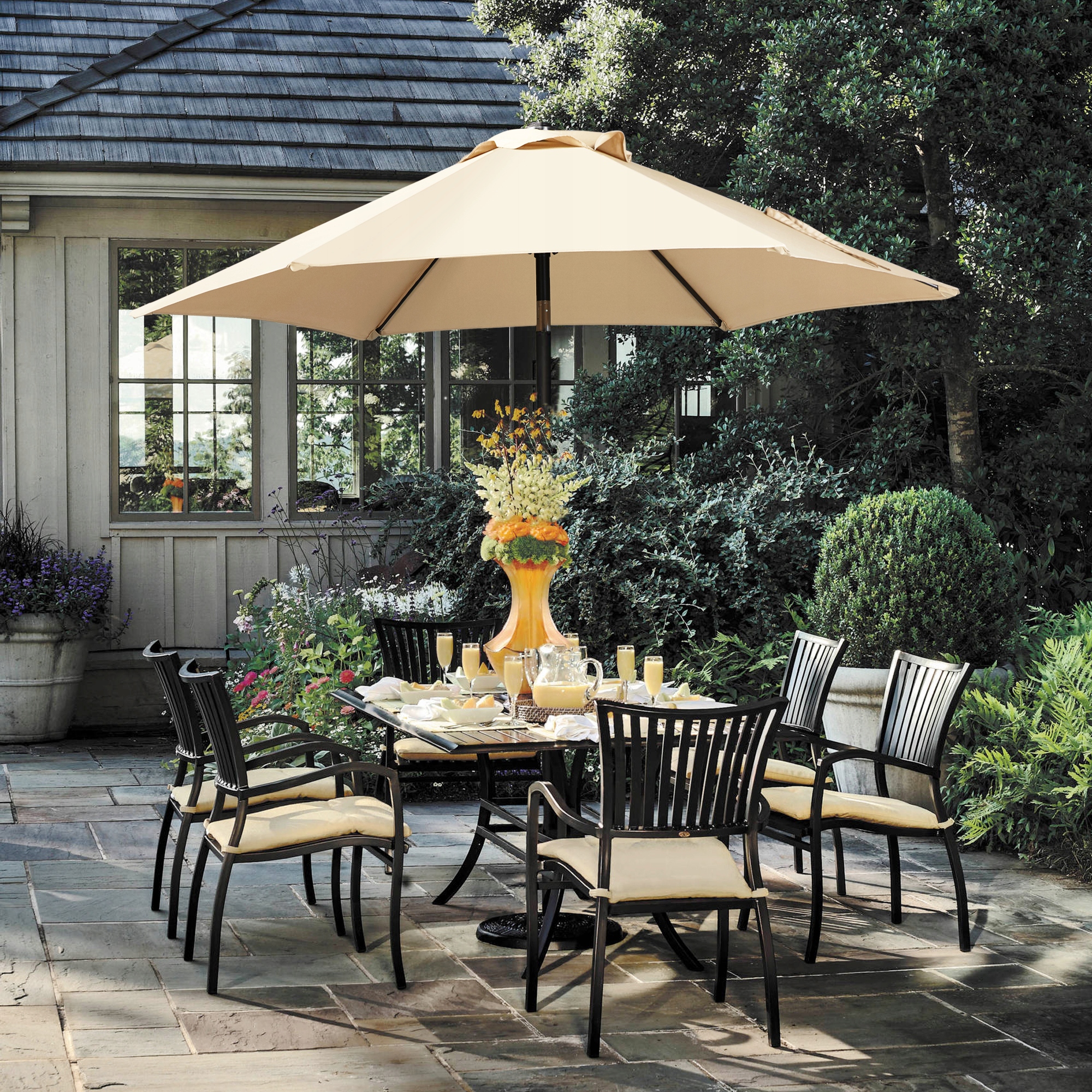 ⛱ долговечный и стабильный: Этот зонтик террасы имеет профессиональный полиэстерский навес с диаметром 230 см, поддерживаемым 6 металлическими ребрами. Прочный, порошковой центральный полюс имеет диаметр 3,8 см. Ветрозащитная чаша увеличивает стабильность зонтика в ветреные дни.