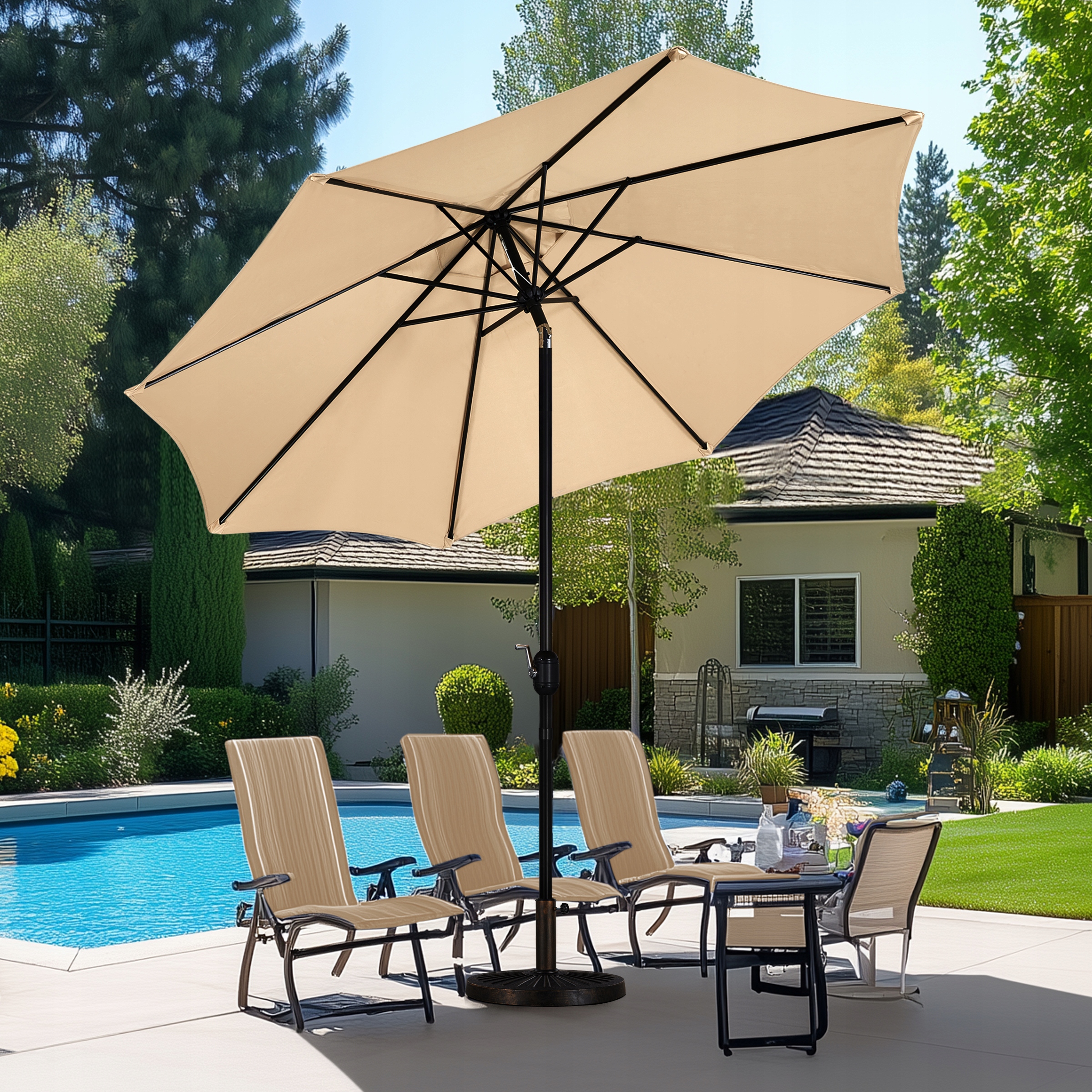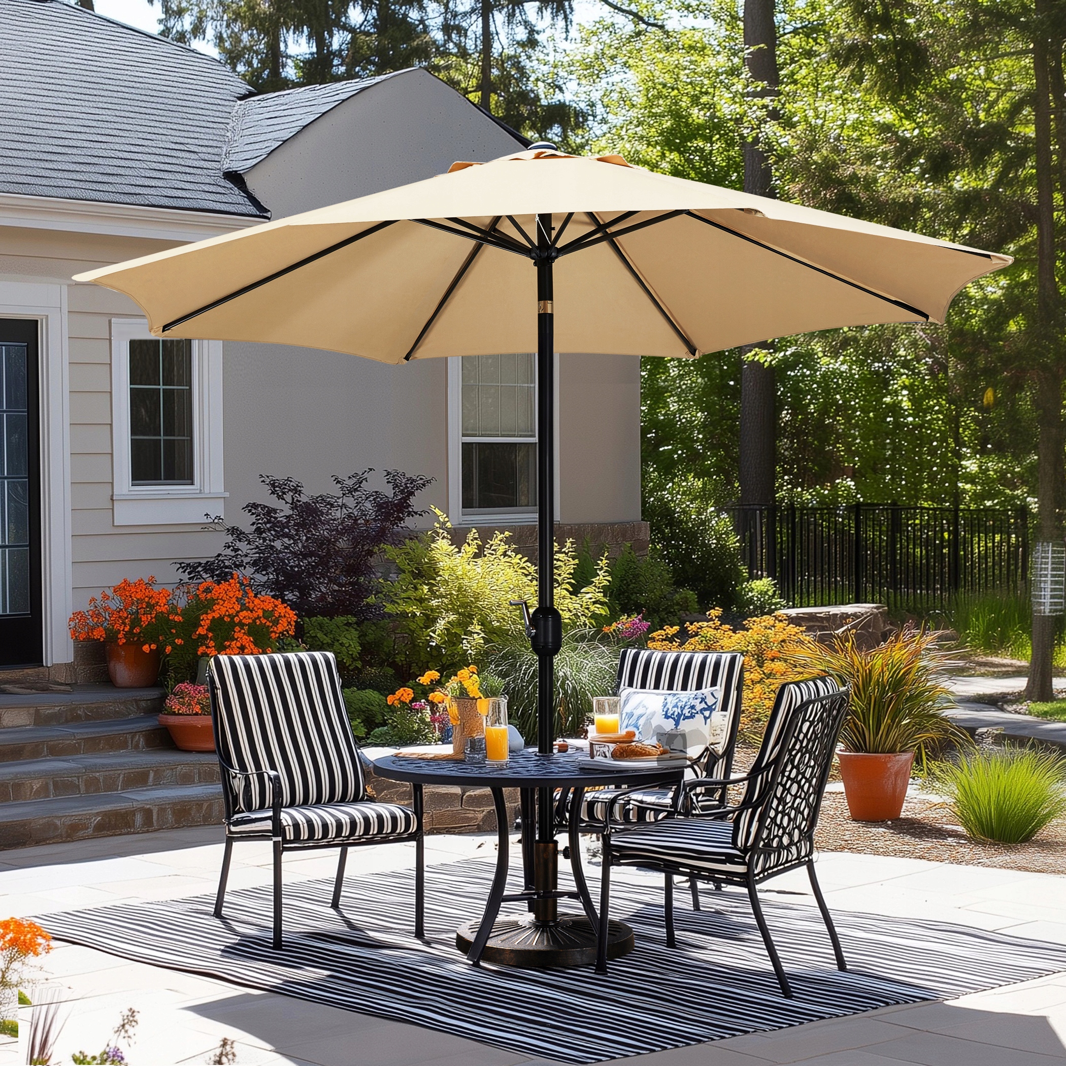 ⛱ Удобный кривошип: Этот солнцезащитный крем легко открывается и закрывается, обеспечивая тень на набор садовой мебели от 4 до 6 стульев или 2 палубы бассейна.