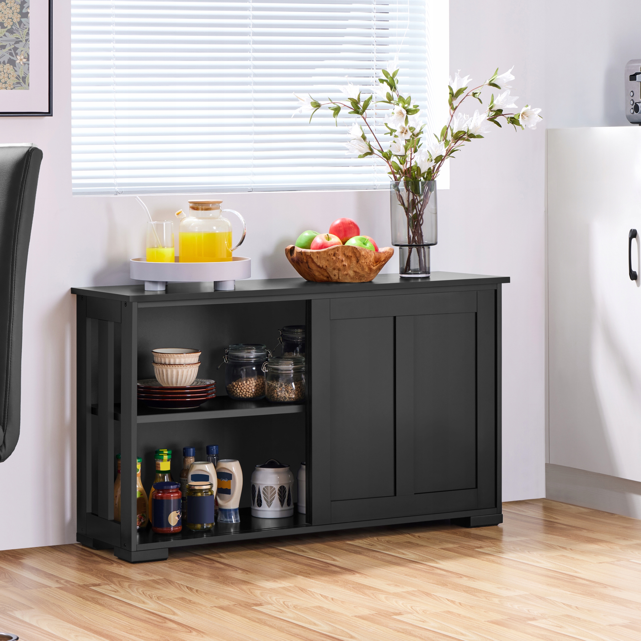 Буфет yaheetech с раздвижными дверями, для кухни, столовой, черной