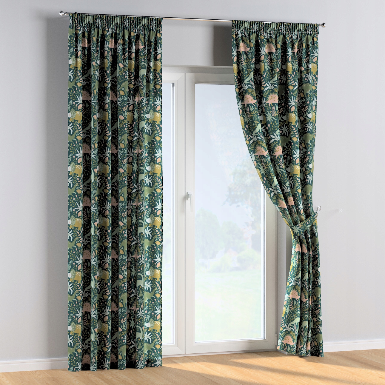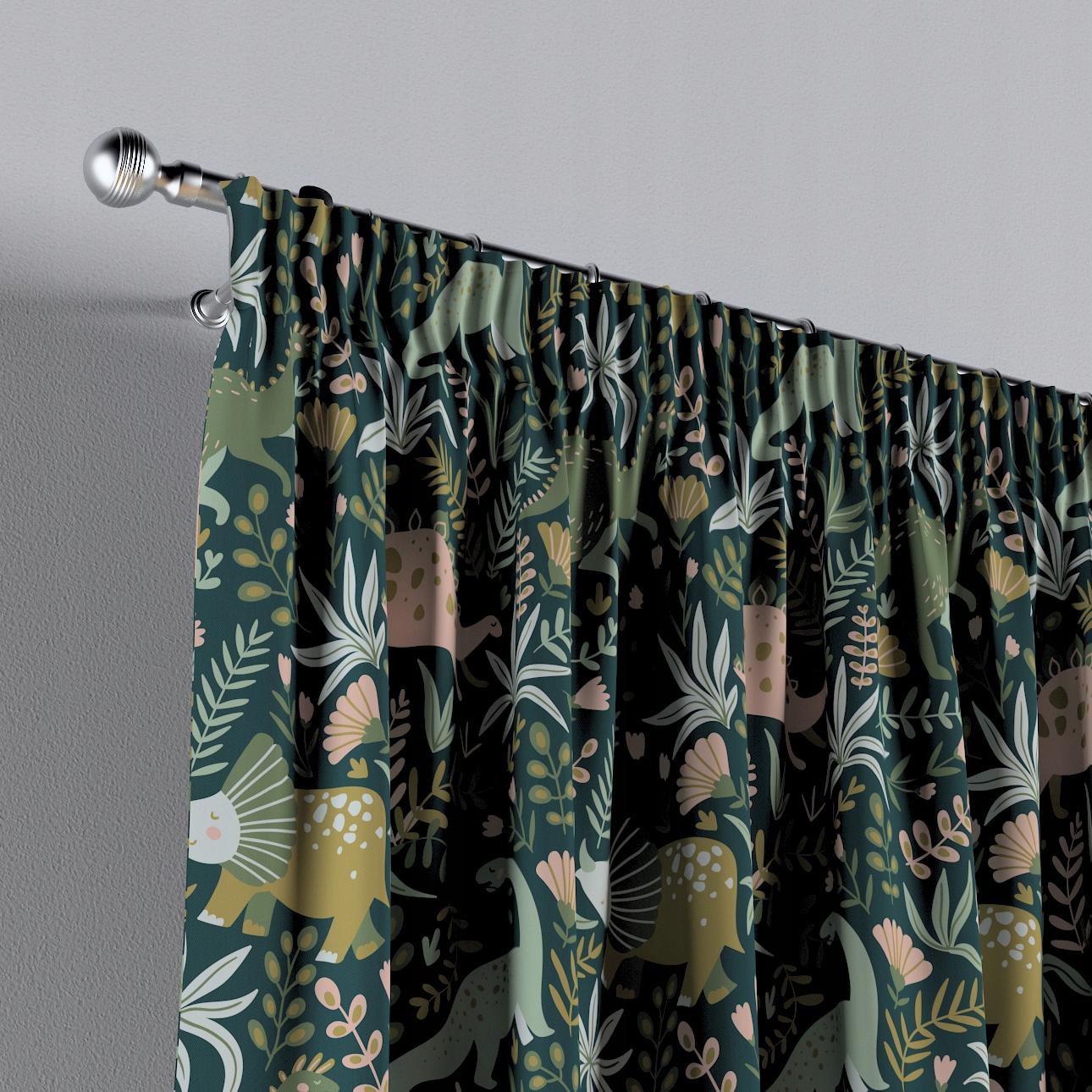 Штора с присборенной лентой 1 шт, 130х245, Динозавры на зеленом фоне, Волшебная коллекция