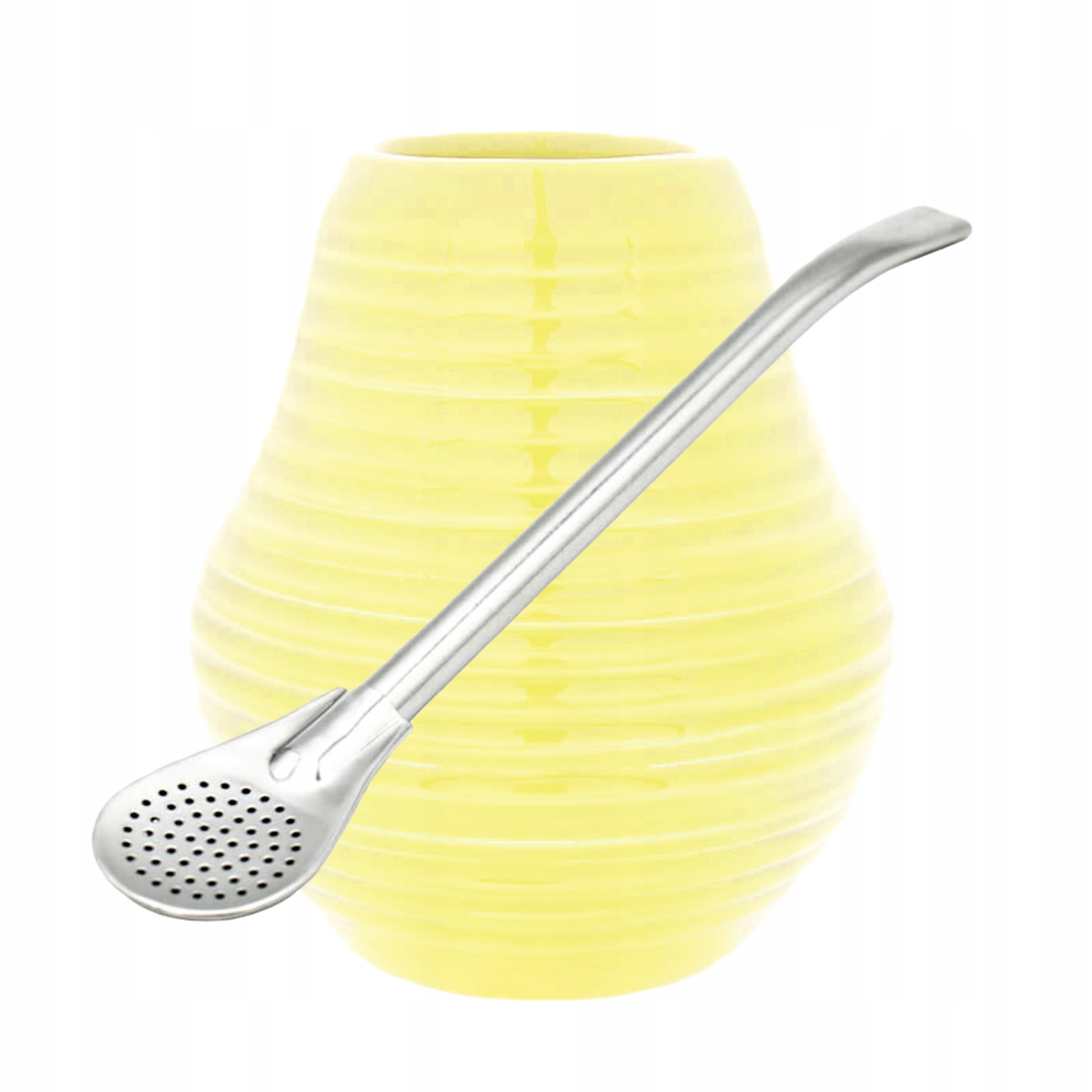 Набор, состоящий из Yerba Mate Lemon 400 г (Yerba Mate с добавлением цедры лимона, лемонграсса и листьев лайма создает неотразимую освежающую композицию), керамического желтого матеро и бомбильи сталь - 19см.