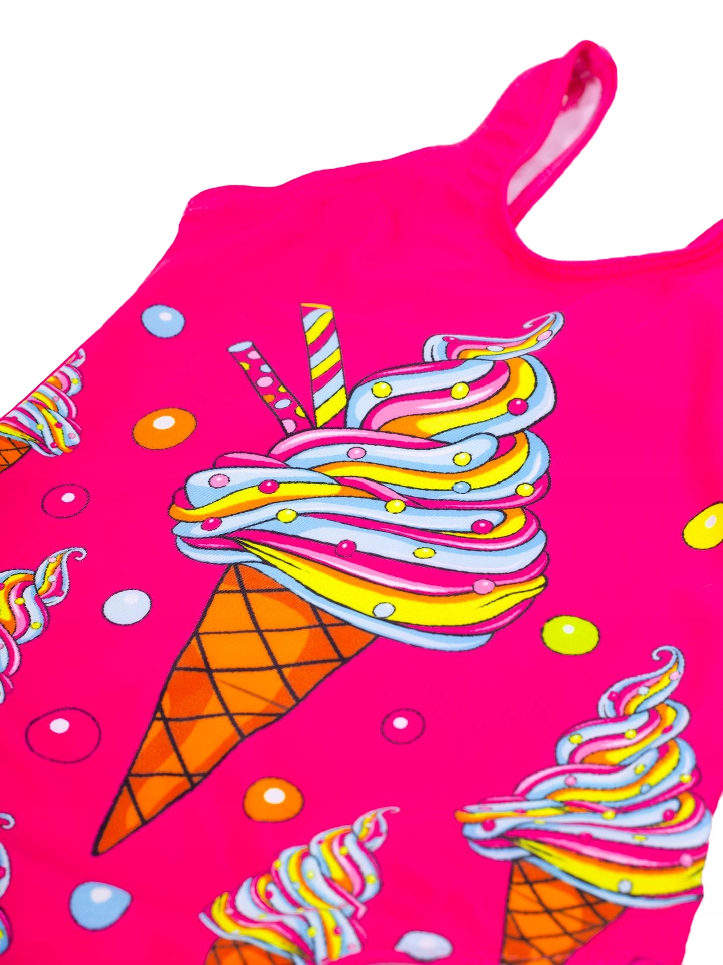 одноразовый купальник с модным разрезом. Яркие цвета с большим принтом мороженого. Купальник из материалов хорошего качества. Он подходит и растягивается, обеспечивая комфорт при ношении. Оригинал по лицензии.