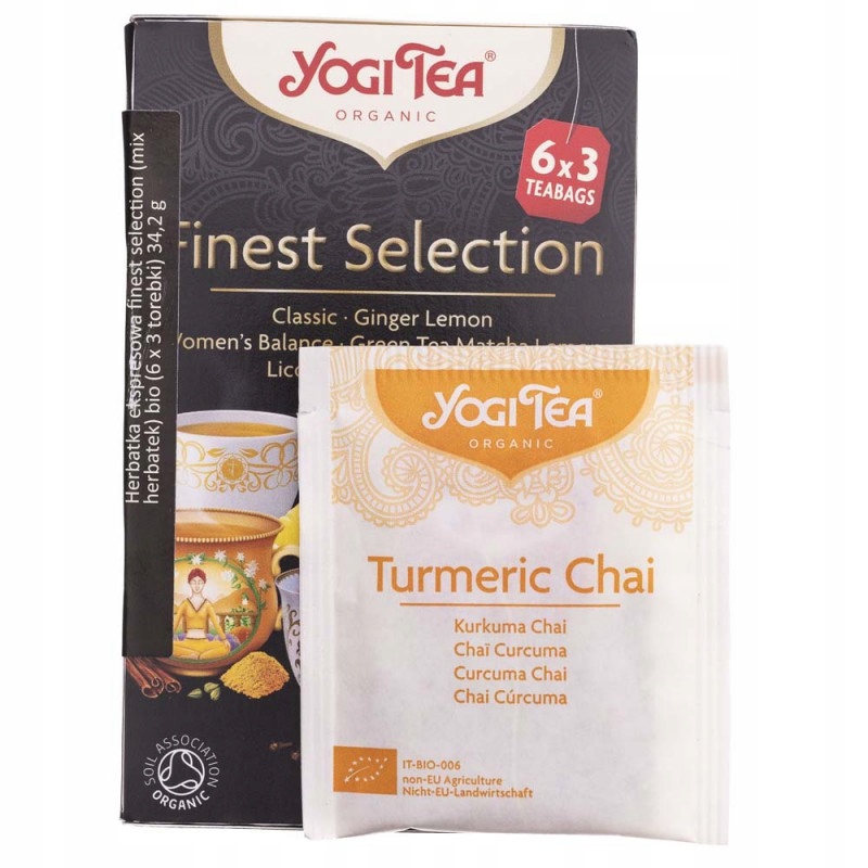 Изысканный набор YOGI TEA® — по 3 пакетика каждого из следующих чаев: Классический, Имбирно-лимонный, Женский баланс, Зеленый чай Матча с лимоном, Солодка, Куркумный чай.
