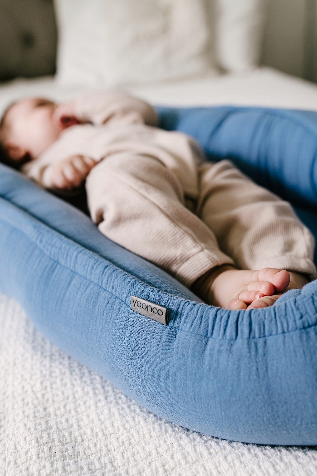 YOONCO ДИТЯЧИЙ КОКОН ВЕЛИКИЙ БАВОВНА МУСЛІН 55x90 СМ ПОЛЬСЬКА ЯКІСТЬ СИНІЙ