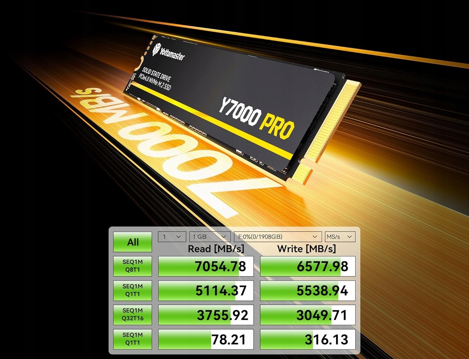 - 【Сверхвысокая скорость чтения и записи】Твердотельный накопитель Yottamaster емкостью 1 ТБ использует комбинацию технологии интерфейса PCIe 4.0 и флэш-памяти 3D NAND, что значительно увеличивает скорость на 43% по сравнению с PCIe 3.0. Благодаря скорости чтения до 7000 МБ/с и скорости записи до 4400 МБ/с твердотельный накопитель NVMe емкостью 1 ТБ значительно повышает производительность передачи данных и скорость реагирования системы, что делает его особенно полезным для таких приложений, как редактирование видео и игр, требующих быстрого отклика.