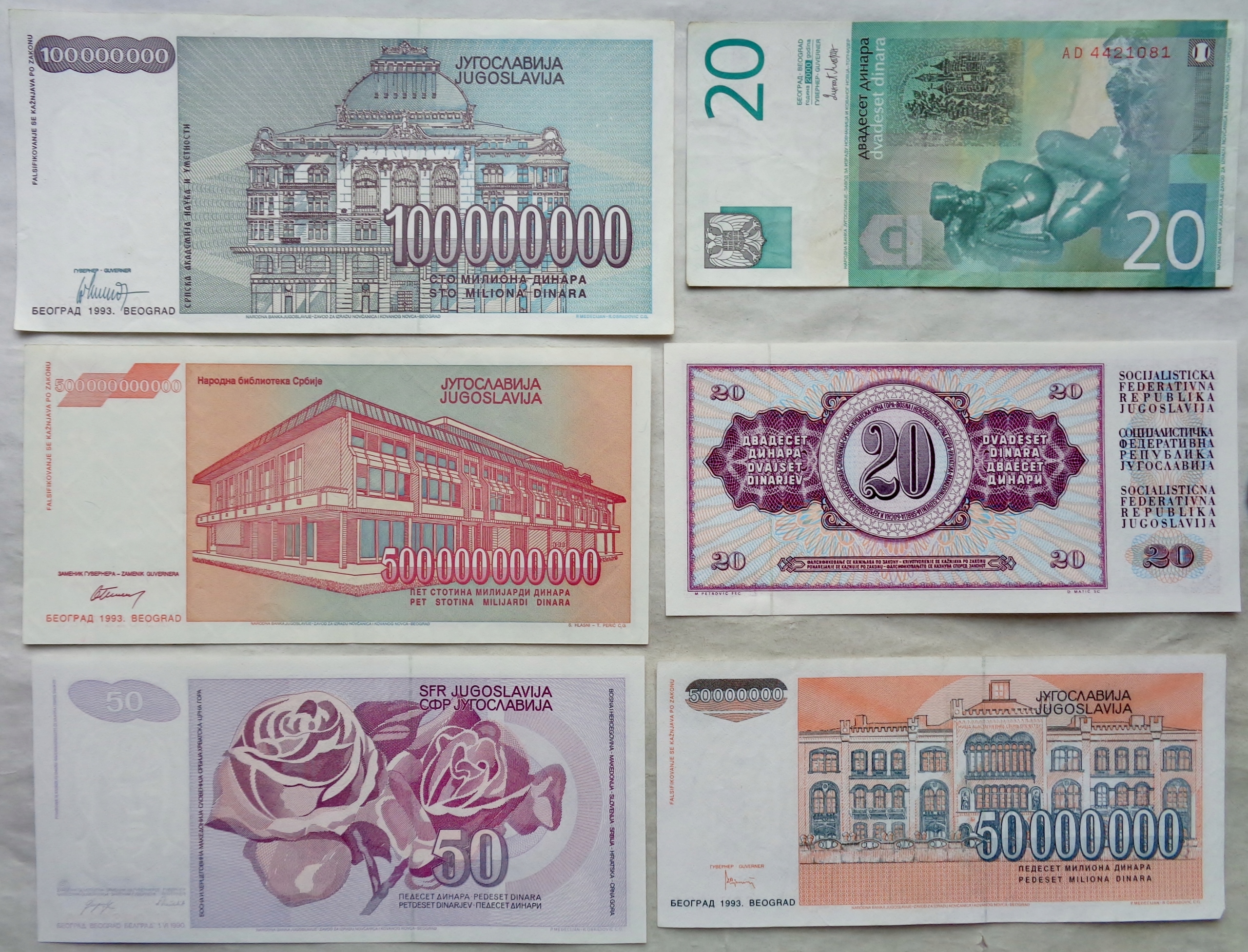 ЮГОСЛАВИЯ - ЛЮБИМЫЕ БАНКНОТЫ - ИСТОРИЧЕСКИЕ - НАБОР / 19