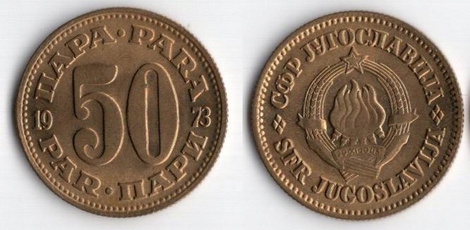ЮГОСЛАВІЯ 1973 50 ПАРА РІЗНОВИД ВУЗЬКИЙ ОТВІР В 0