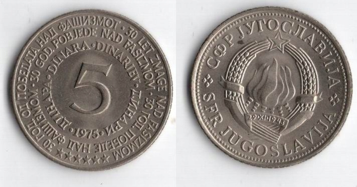 ЮГОСЛАВІЯ 1975 5 ДИНАРА РОЗГРОМ ФАШИЗМУ
