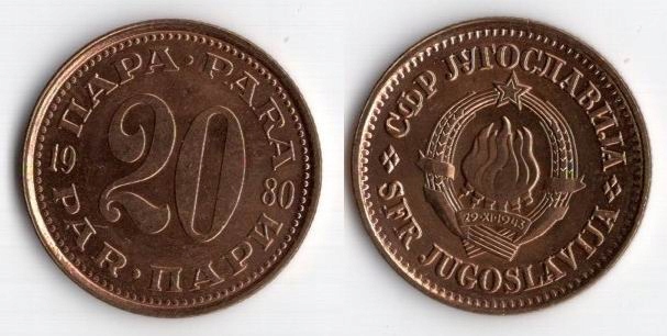 ЮГОСЛАВІЯ 1980 20 ПАРА