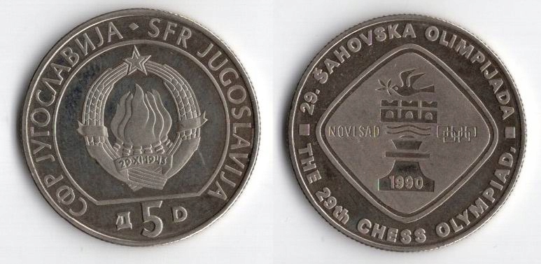 ЮГОСЛАВІЯ 1990 5 ДИНАРА ШАХОВА ОЛІМПІАДА