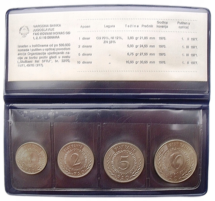 ЮГОСЛАВІЯ 4 МОНЕТИ 1970-76 ФАО БЛІСТЕР