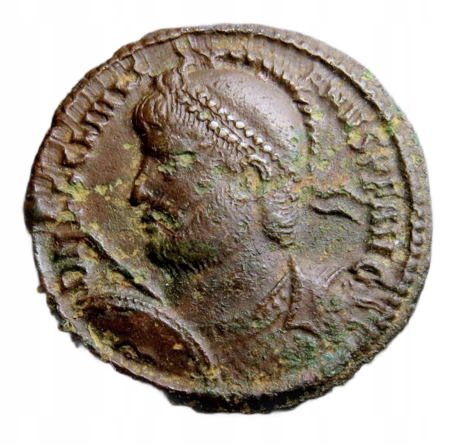 ТИП БЮСТА, ХАРАКТЕРНЫЙ САЛОНИКИ, ШОКОЛАДНАЯ ПАТИНА С ЗЕЛЕНЫМИ ЭЛЕМЕНТАМИ, ЧТО-ТО ДЛЯ ЛЮБИТЕЛЕЙ ДО ЧИСТКИ НУМИЗМАТОВ, МОНЕТА, ОТЧЕТАННАЯ В ПЕРВОМ МОНЕТНОМ ОТДЕЛЕНИИ В САЛОНИКАХ В 361-363 ГОДАХ Н.Э., Р.И.К. ЭТО ПРИДАЕТ ЭТОЙ МОНЕТЕ ВЫСОКУЮ СТЕПЕНЬ РЕДКОСТИ – S – РЕДКОСТЬ