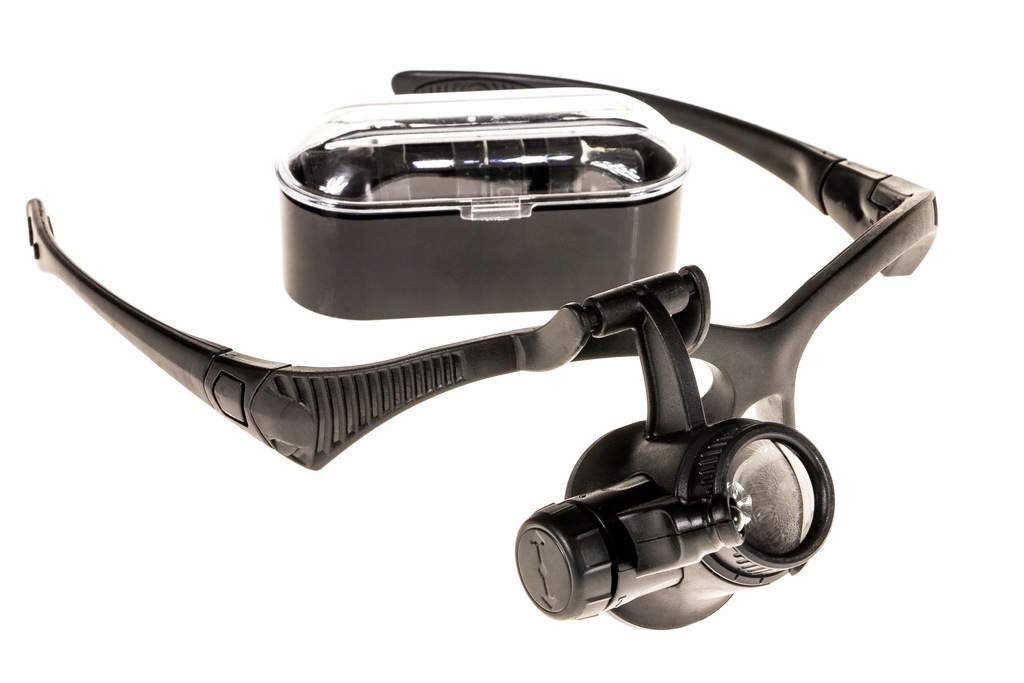 Лупа часовщика с подсветкой для точной работы, надевается на голову, как очки. Точная светодиодная подсветка может быть направлена непосредственно на наблюдаемый объект, благодаря чему он прекрасно виден во время работы даже при плохом освещении.