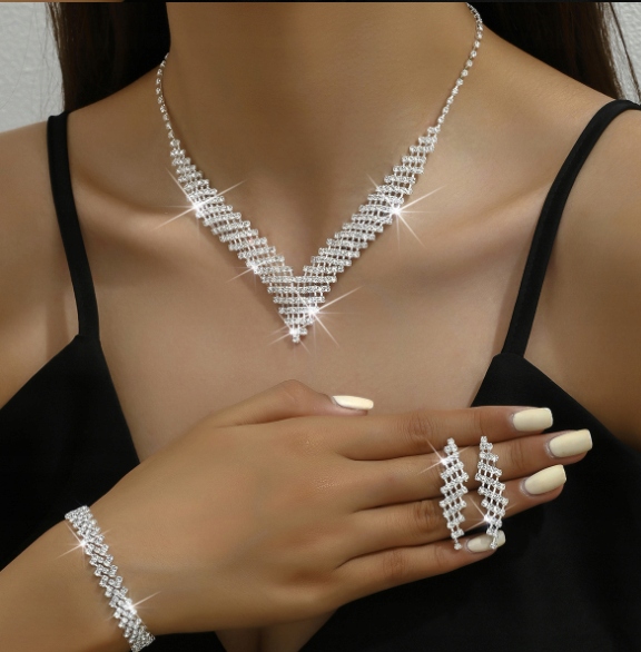 Ювелирные украшения серебряные серьги колье браслета свадебные стразы B7