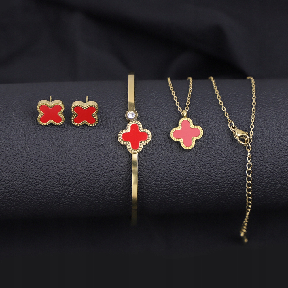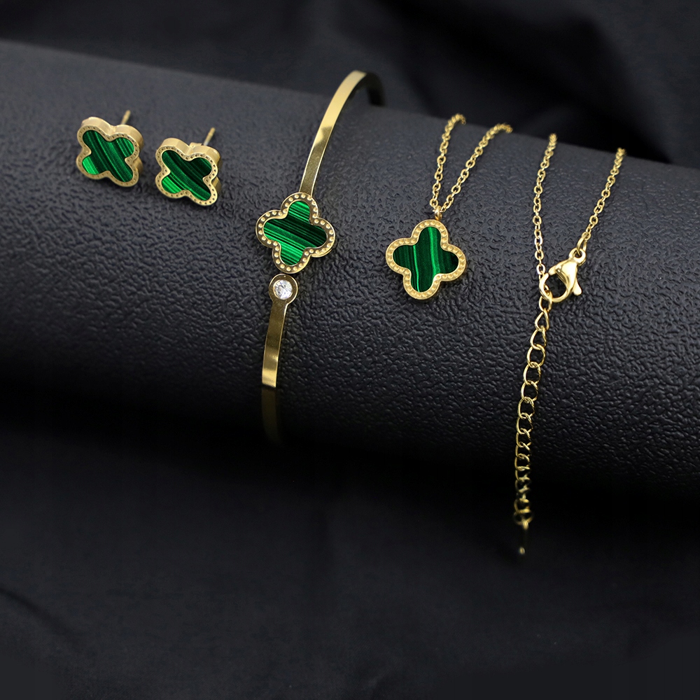 Комплект украшений из нержавеющей стали - колье, серьги, браслет - черный/зеленый/красный - на выбор.