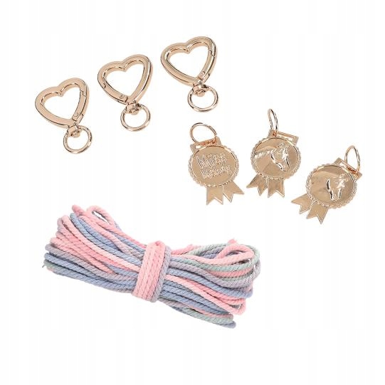 Ювелирные изделия с ключом ключа лошадей. Это креативный набор, который позволяет вам составить до 3 красивых ключевых колец с красочными хлопковыми лентами и золотистыми подвесками.