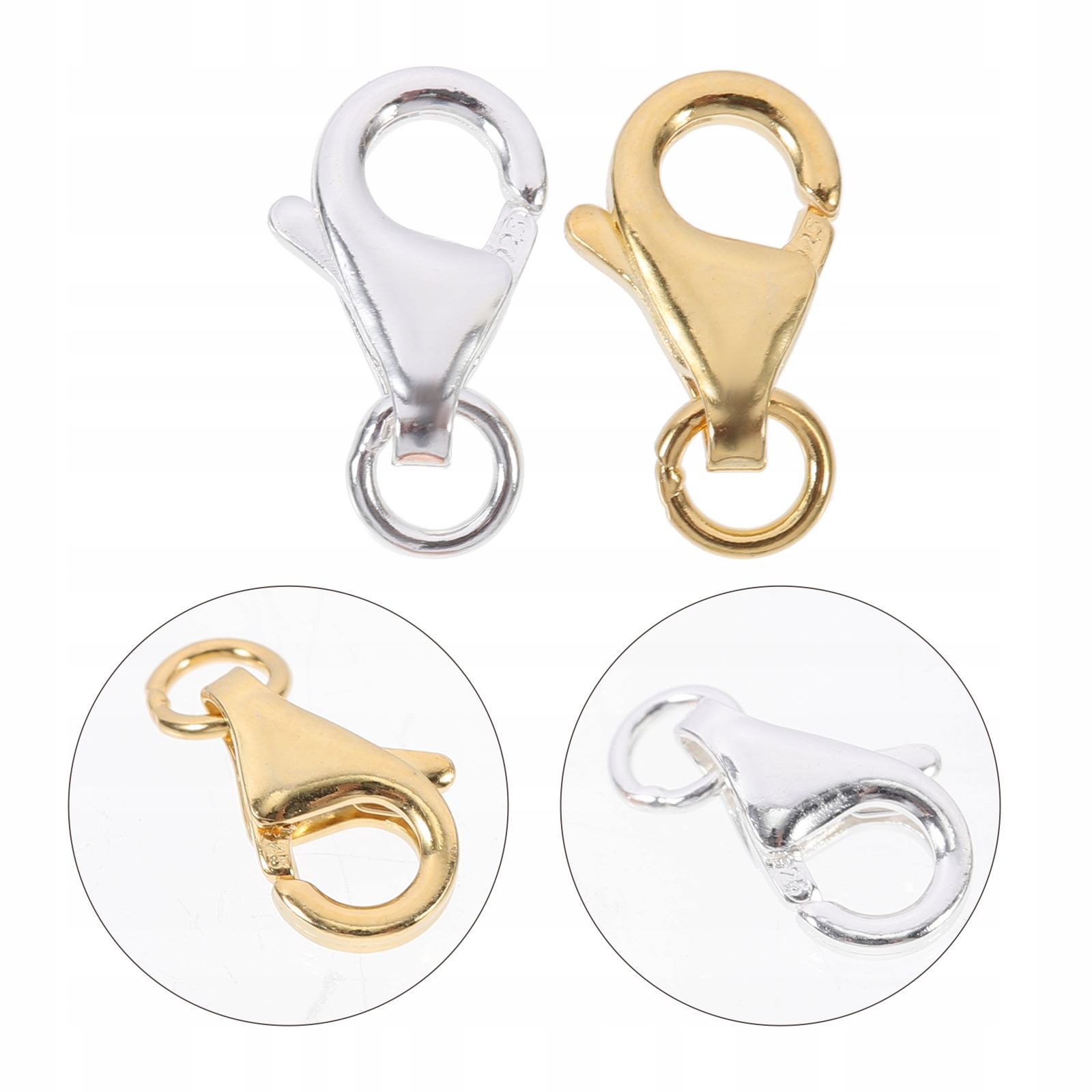 Это набор застежек-карабинов для украшений своими руками. Этот предмет подходит для изготовления ювелирных изделий своими руками, поделок и т. д. Пряжка DIY подходит для большинства подвесок, ее можно использовать для изготовления собственных персонализированных ожерелий, обручальных колец, сережек и т. д.