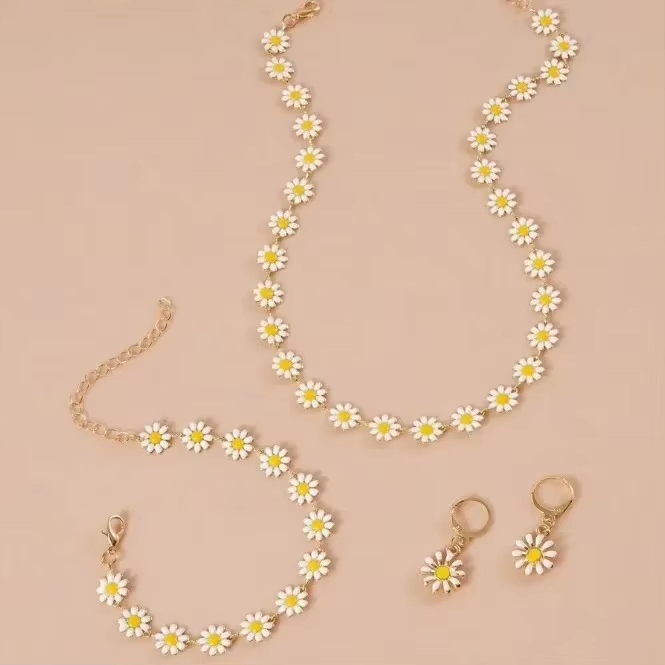 Романтический набор украшений в золотом цвете, украшенная ромашками, является идеальным выбором весной и летом! Благодаря этому каждая стилиза получит свежесть, легкость и девиц -шарм.