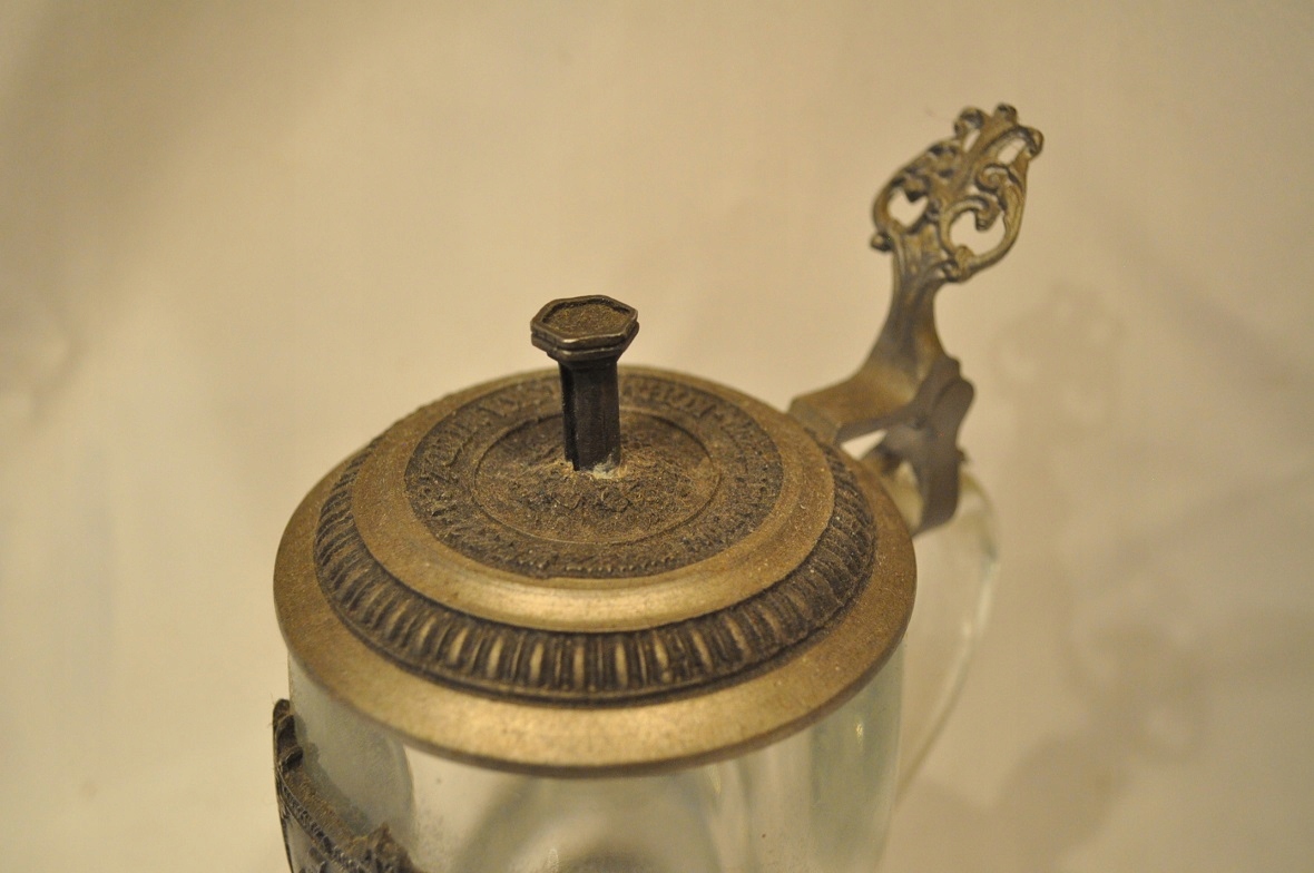 На лицевой стороне кружки жестяная эмблема с юбилейной надписью: