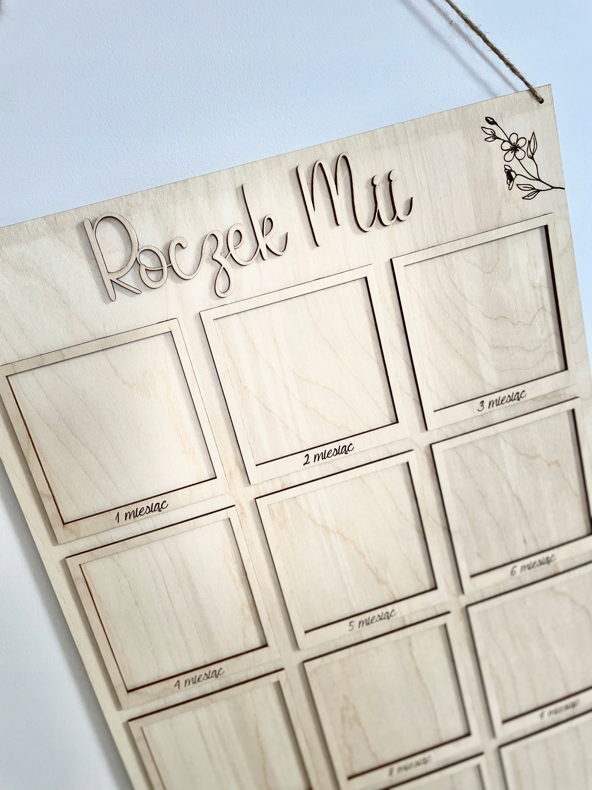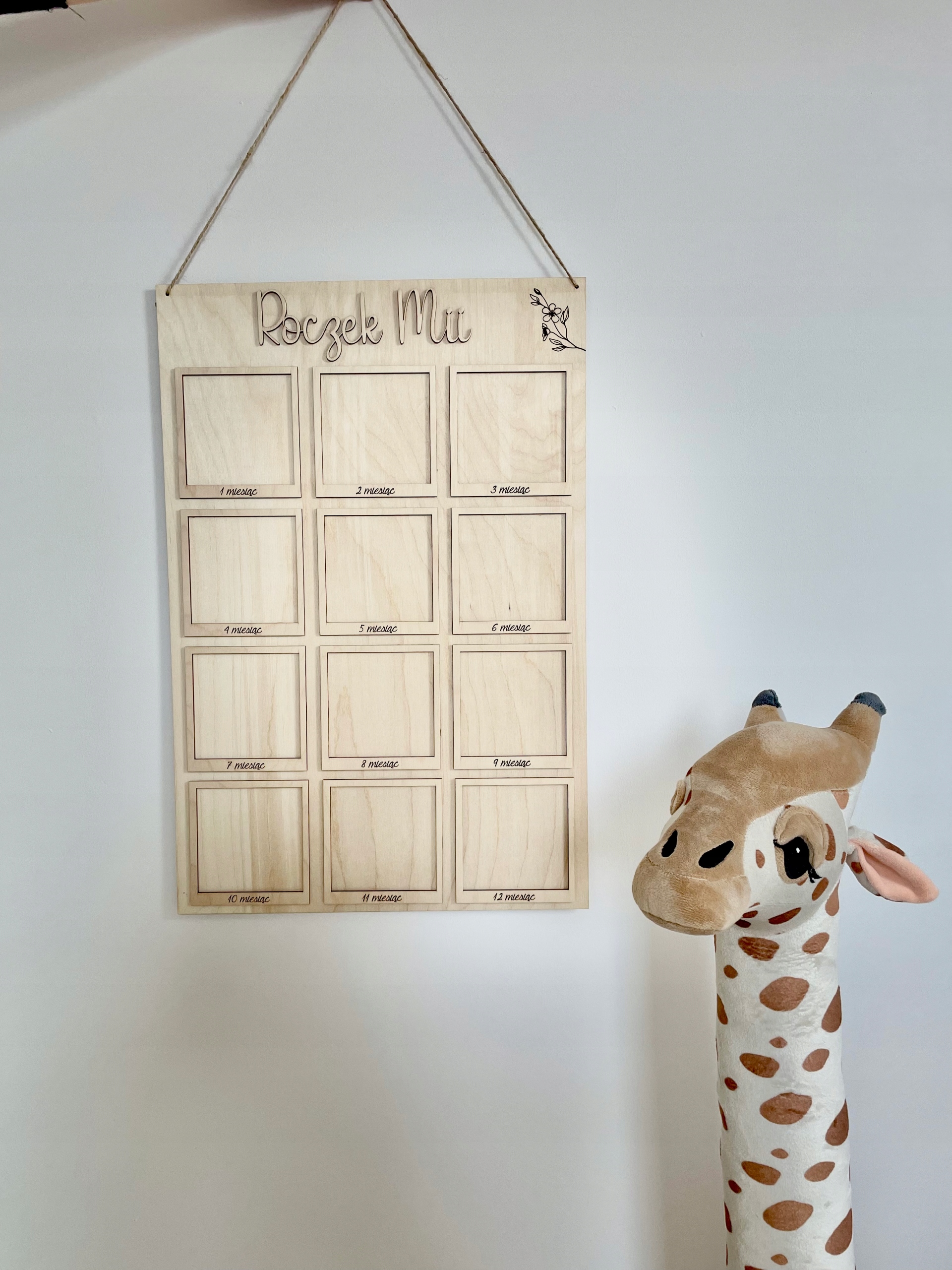 Персонализированная доска для фотографий каждого месяца первого года жизни ребенка. Доска подойдет в качестве украшения во время празднования дня рождения, а также интересно украсит детскую комнату.
