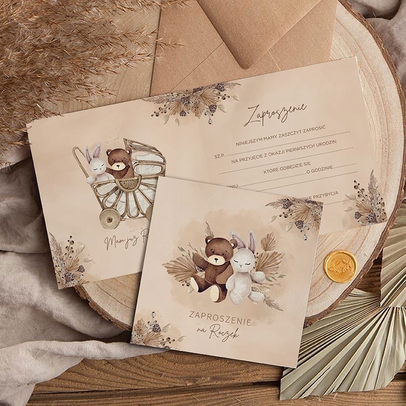 ЮВІЛЕЄВІ ЗАПРОШЕННЯ ВЕДМЕДЬ BOHO, КОНВЕРТ 10 ШТ