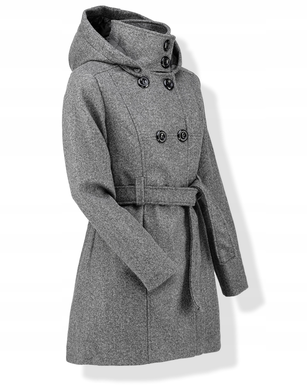 С ПОЯСОМ ПАЛЬТО КЛАССИЧЕСКОЕ С КАПЮШОНОМ_KOLORY_L