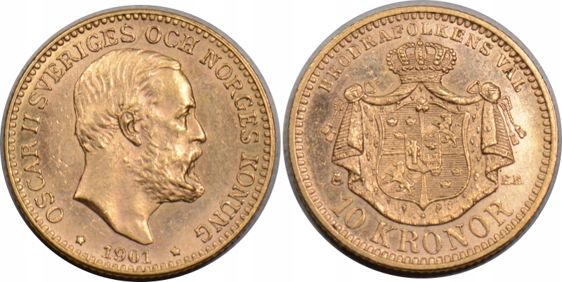 Z993.ШВЕЦИЯ 10 КОРОН 1901 ОСКАР II ГОСУДАРСТВО: 1-е ЗОЛОТО