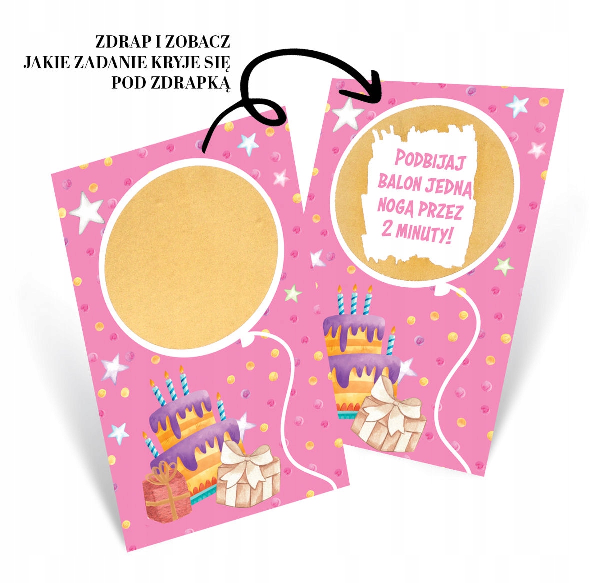 ZABAWA urodziny karty gra Zdrapki Zadania 20 sztuk