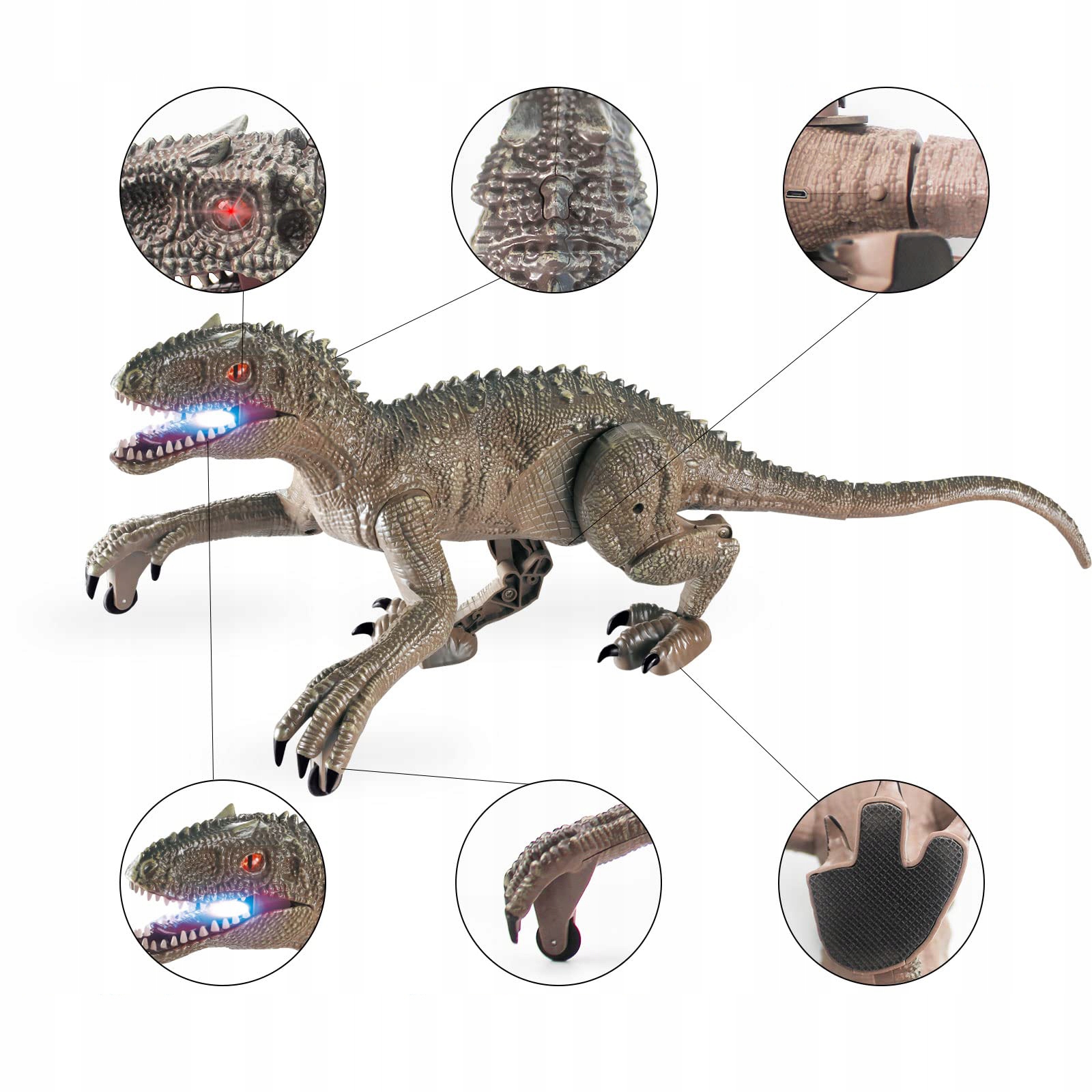 ZABAWKA DINOZAUR ZDALNIE STEROWANY WELOCIRAPTOR CHODZĄCY Z RYKIEM + PILOT