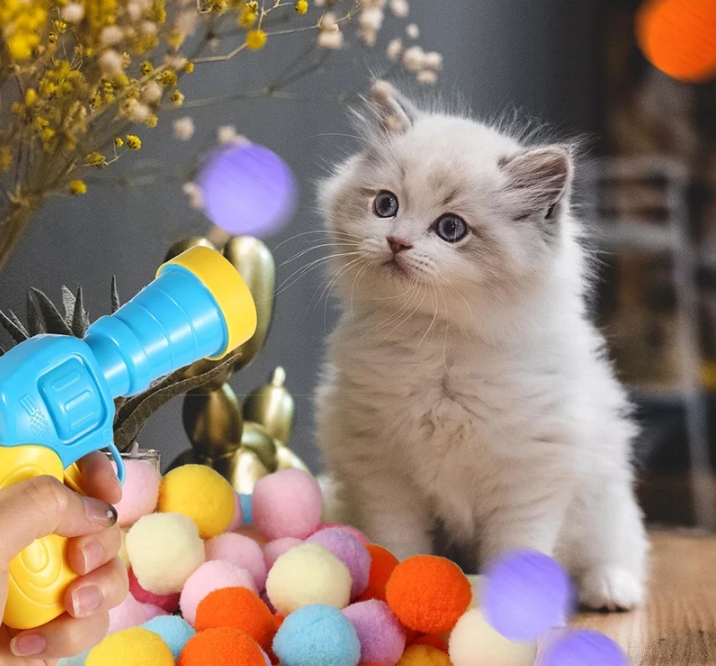 Zabawka INTERAKTYWNA dla Kota Pistolet z kulkami piłkami Shooter 30 KULEK