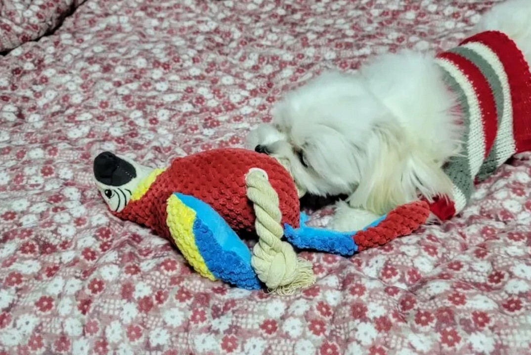 ZABAWKA PISZCZĄCA DLA PSA PAPUGA PLUSZOWA SZARPAK GRYZAK